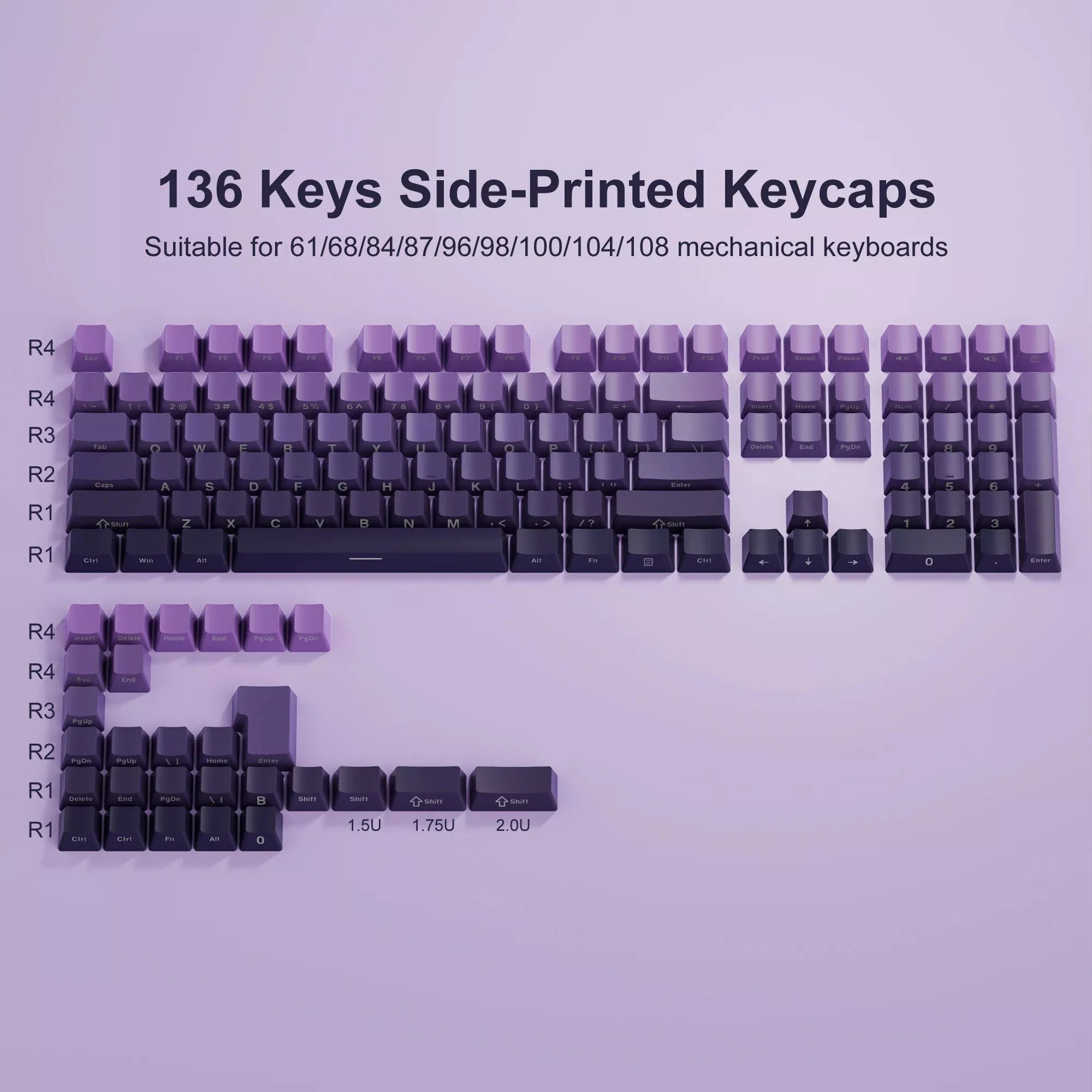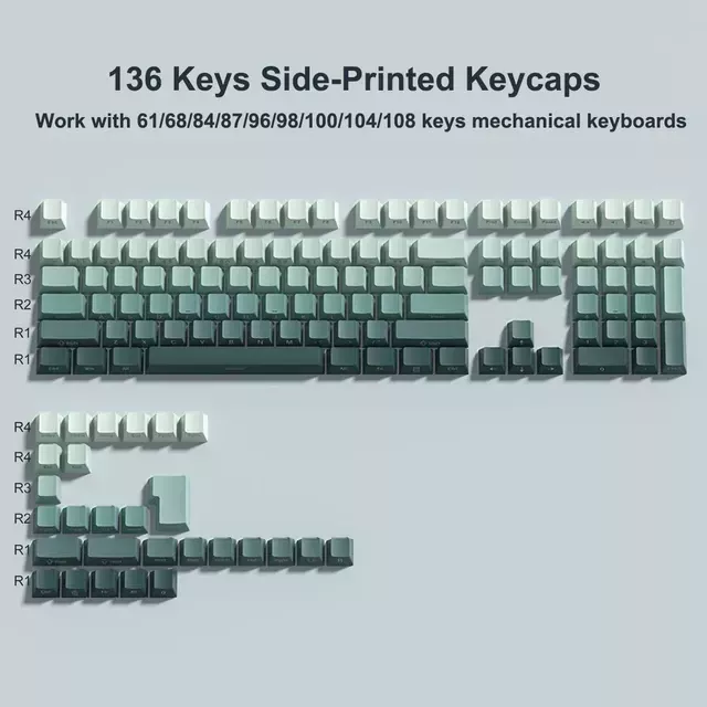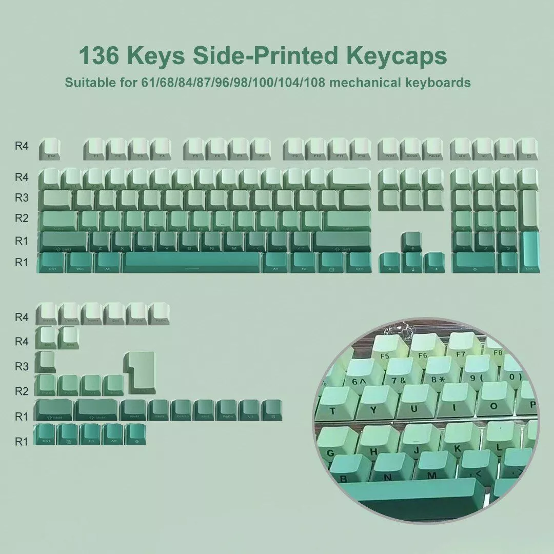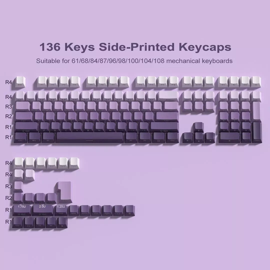 What sets our keycaps apart is the attention to detail in both design and functionality. The Gradient color options, including grey, purple, pink, green, and black, offer a visually stunning look that complements any keyboard. The side print backlit feature adds a subtle but impressive visual effect, perfect for both day and night use. Moreover, the inclusion of a keycap puller in the box makes the installation process effortless.