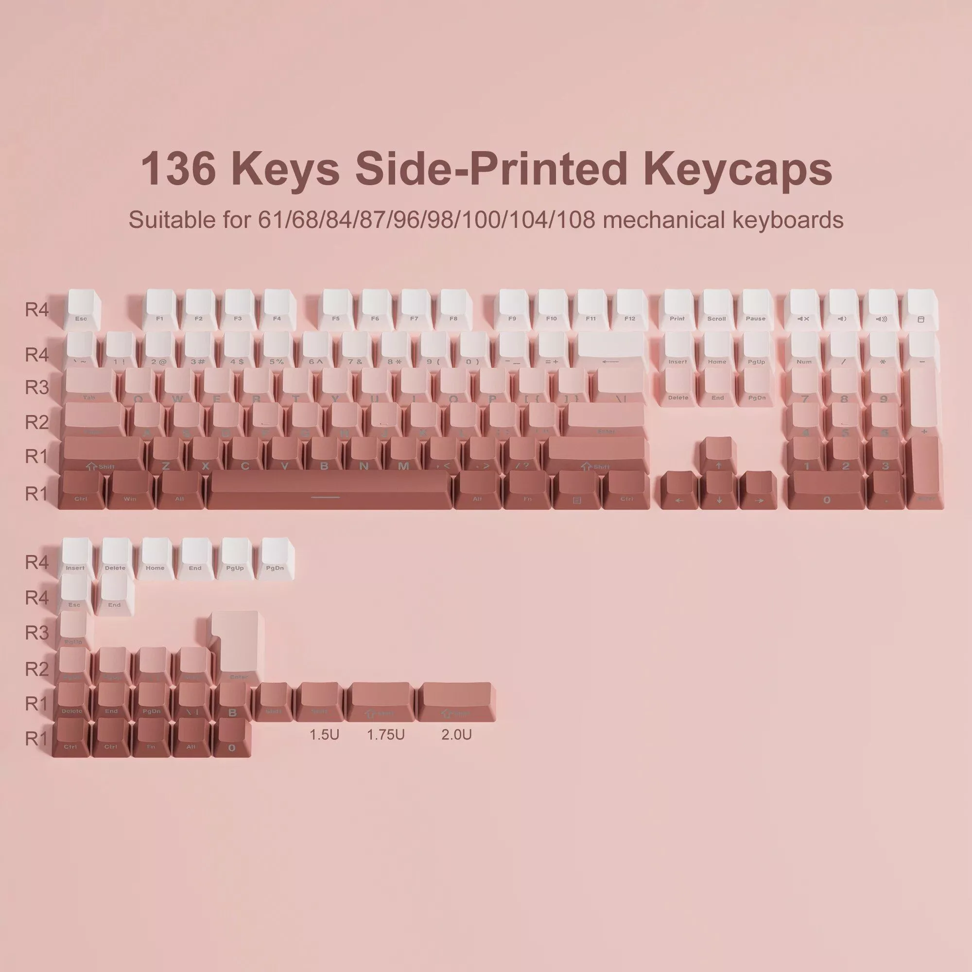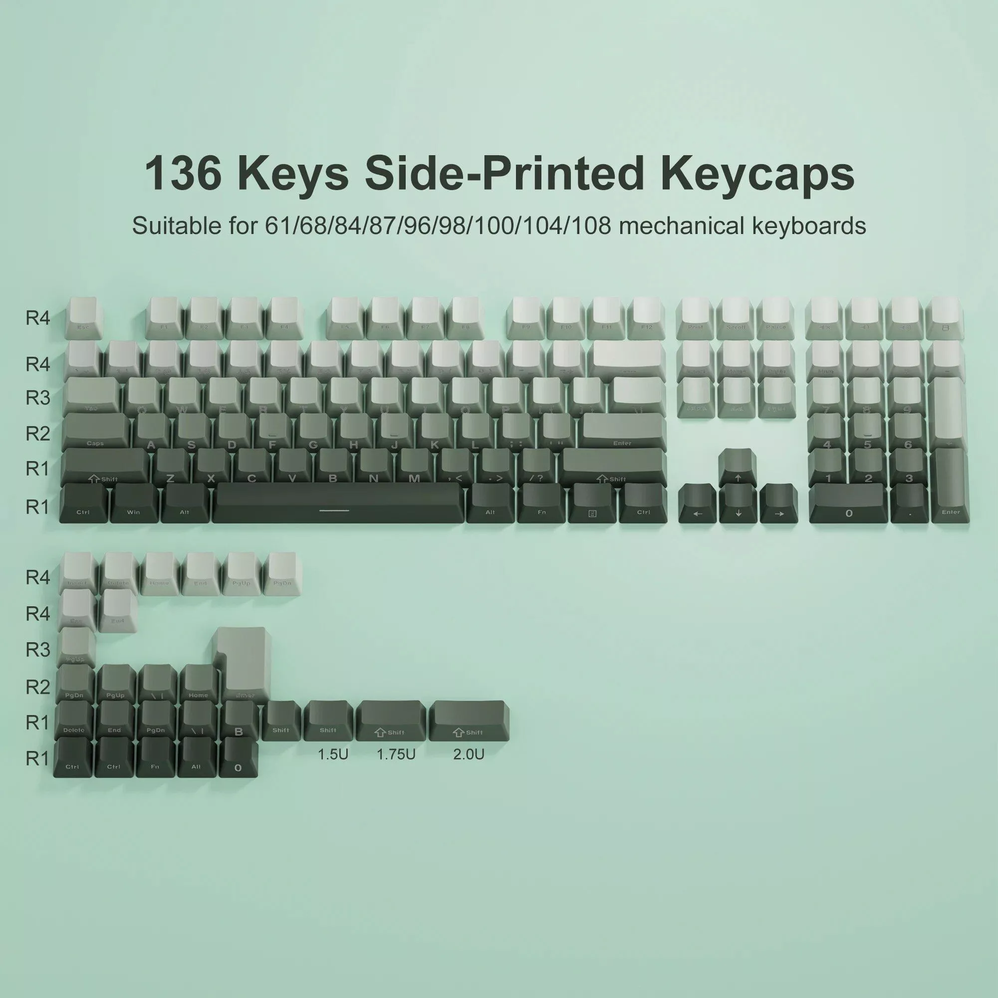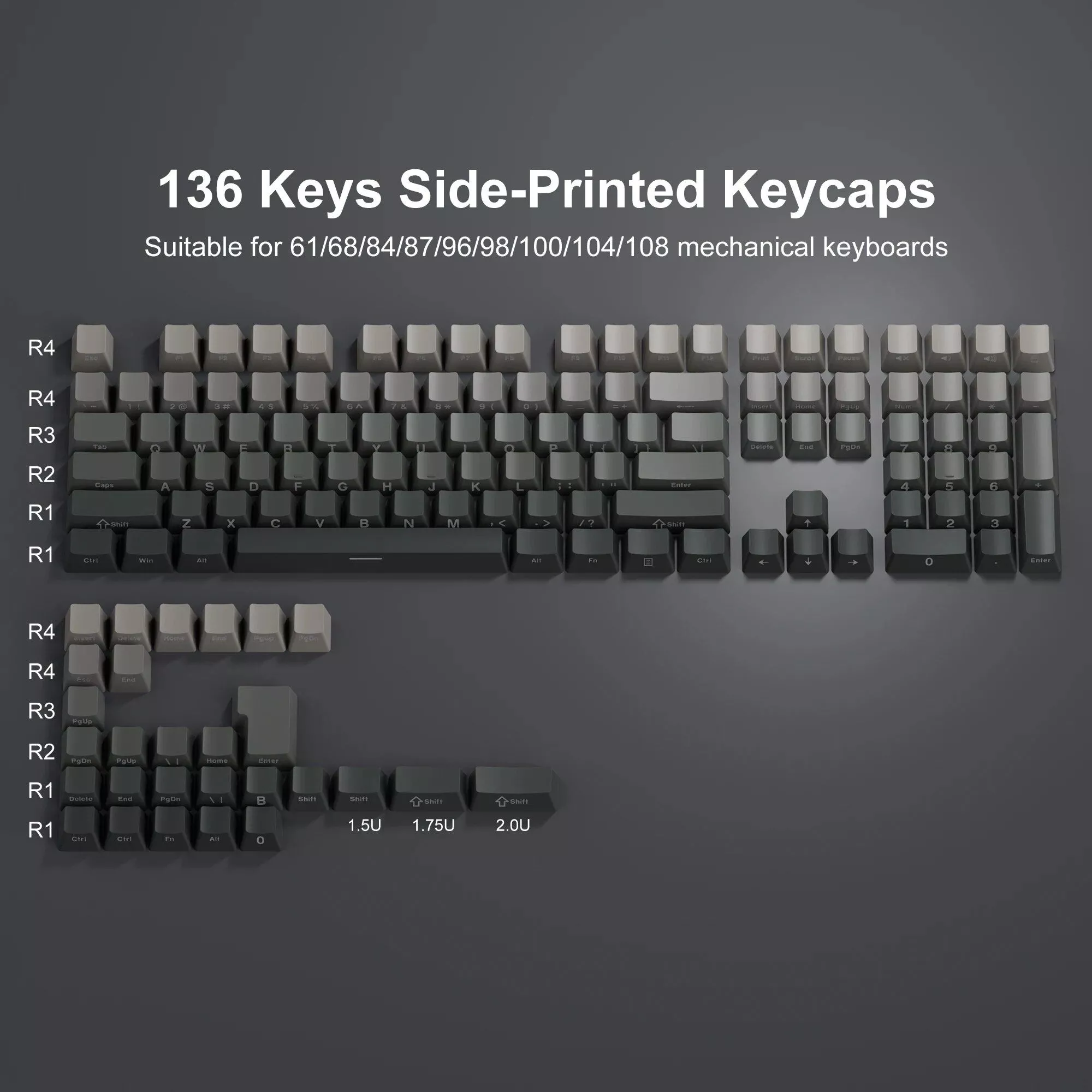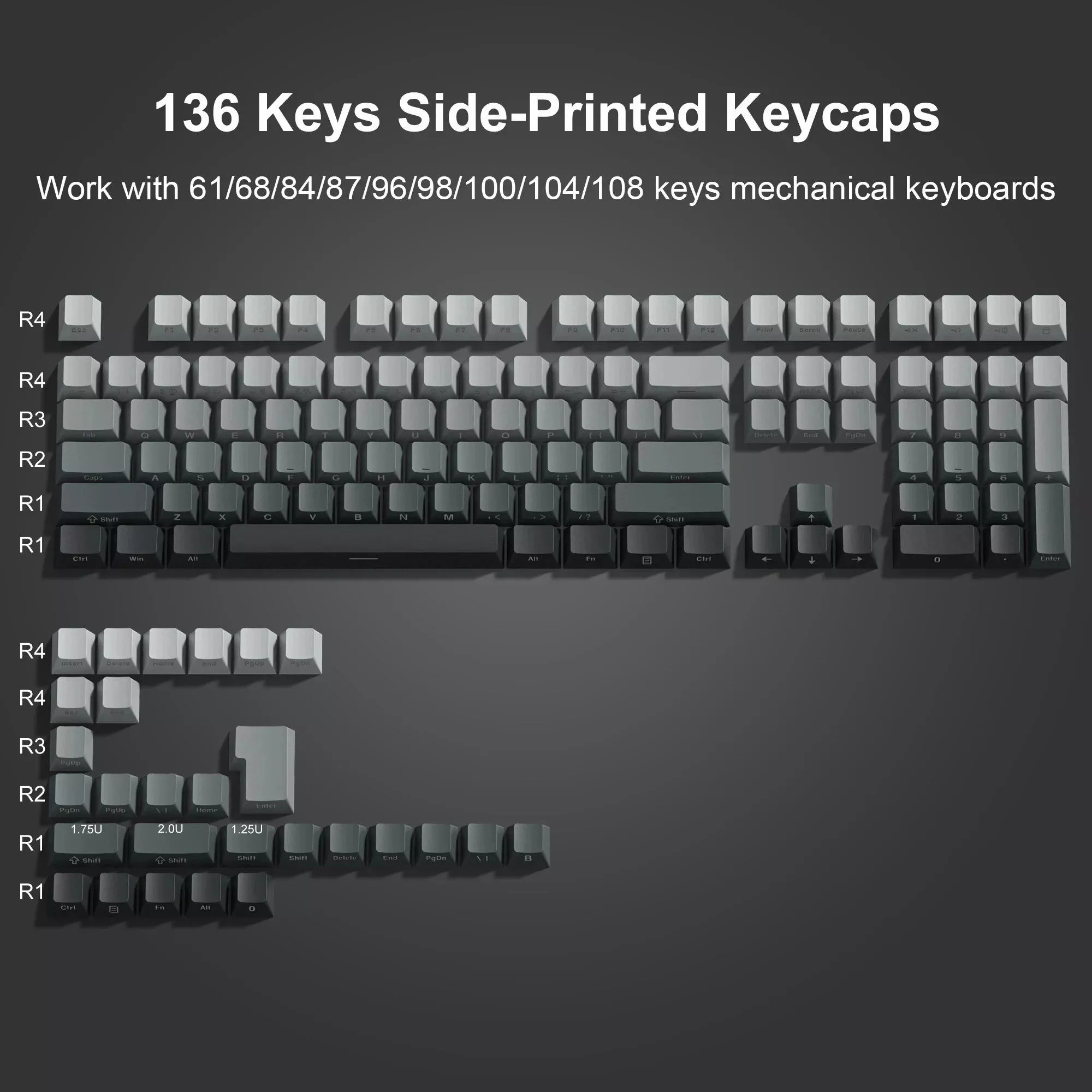What sets our keycaps apart is the attention to detail in both design and functionality. The Gradient color options, including grey, purple, pink, green, and black, offer a visually stunning look that complements any keyboard. The side print backlit feature adds a subtle but impressive visual effect, perfect for both day and night use. Moreover, the inclusion of a keycap puller in the box makes the installation process effortless.