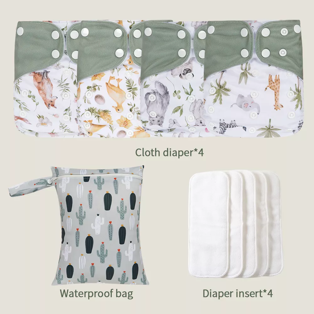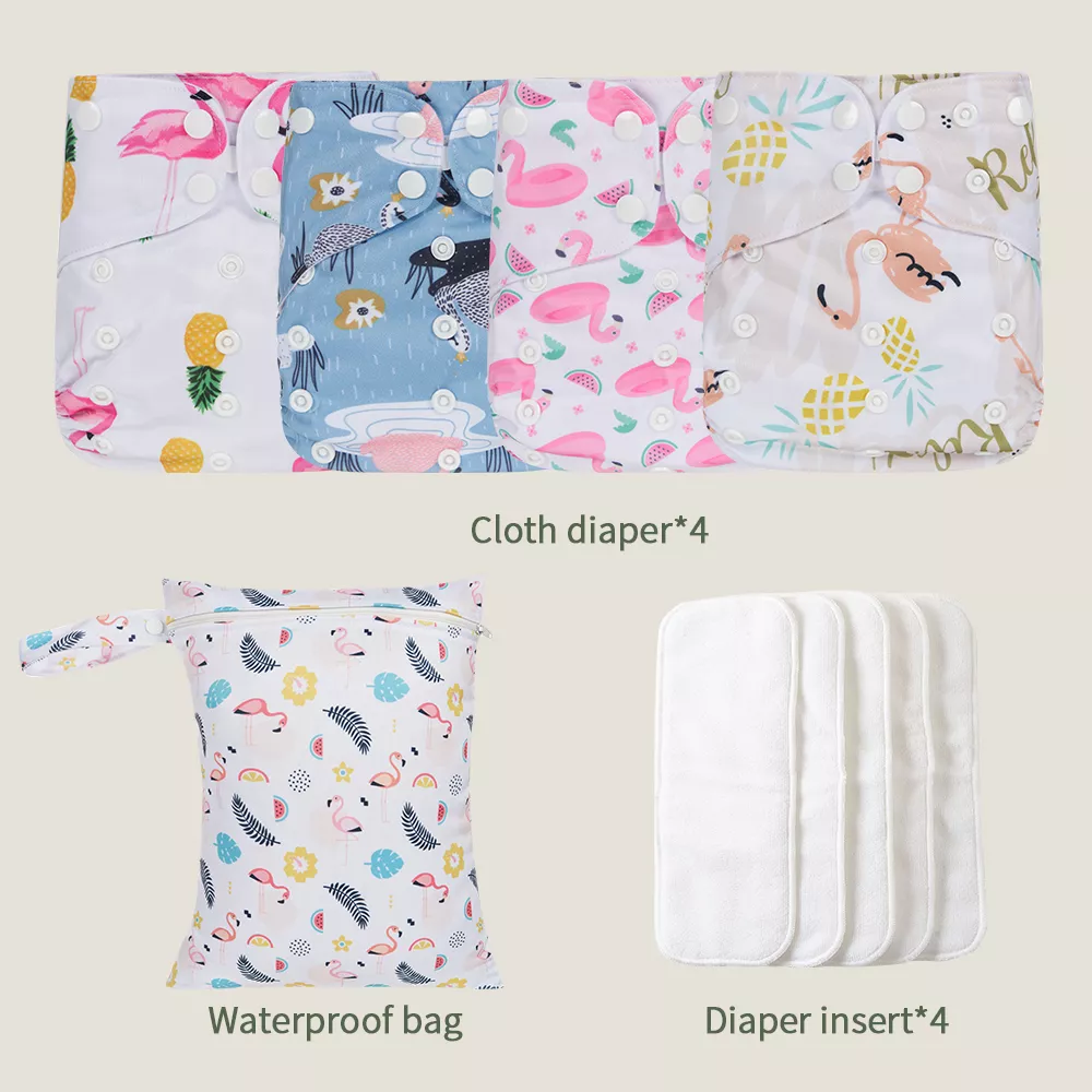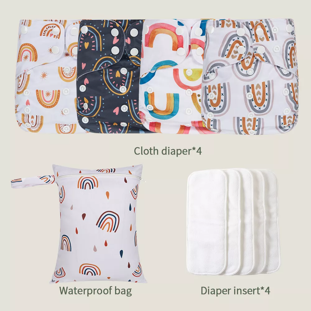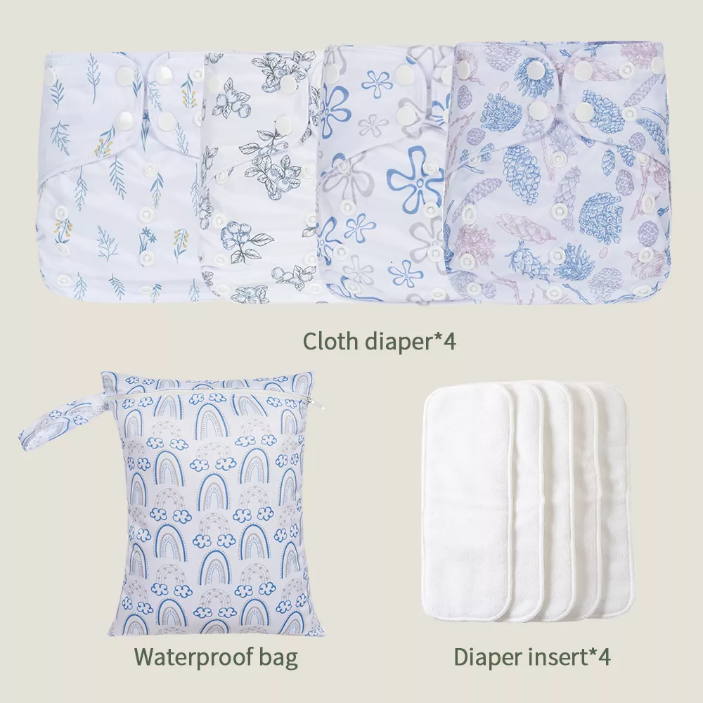 - 4 Absorbent Inserts: Each diaper comes with a washable, reusable insert for superior absorption and convenience.