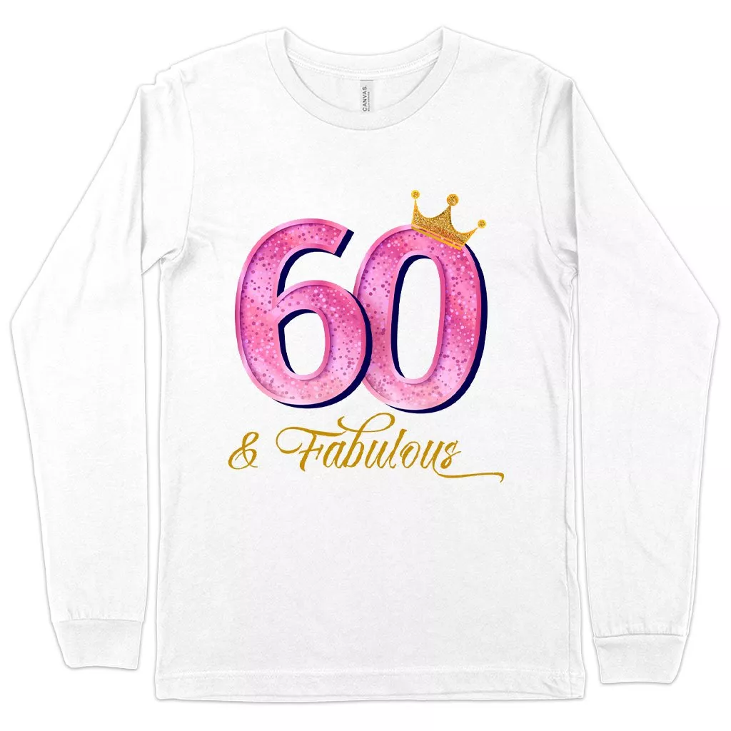 60 & Fabulous Long Sleeve T-Shirt – 60th Birthday Ladies’ T-Shirts – T-Shirts for 60 Year Old Birthday