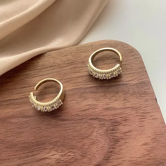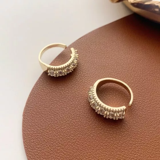 Our magnificent adjustable chic ring is made with great attention to detail. The bright golden band has always been a symbol of status and class. Its white crystals look like stars which shine almost as bright as your smile. Wear this ring with any outfit and enjoy the compliments!
