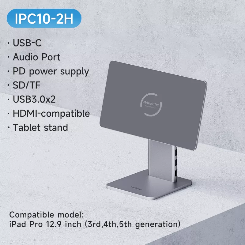 This adjustable magnetic stand is perfect for anyone who frequently uses their iPad Pro or iPad Air for work, study, or entertainment. Whether you’re sketching your next masterpiece, taking notes during a lecture, or watching videos hands-free, this stand provides the comfort and flexibility you need. It’s also great for creating a more organized, productive workspace by acting as a docking station for all your devices. Use it to connect your iPad to a larger screen via HDMI, transfer files via USB, or charge your device while keeping it securely propped up at the ideal angle.