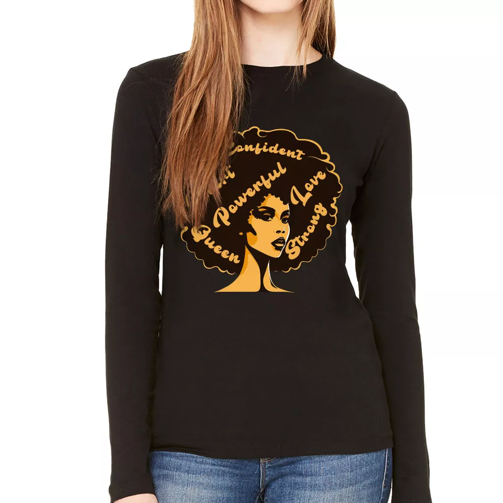 Afro Hair Women’s Long Sleeve T-Shirt – African American Long Sleeve Tee – Best Design T-Shirt