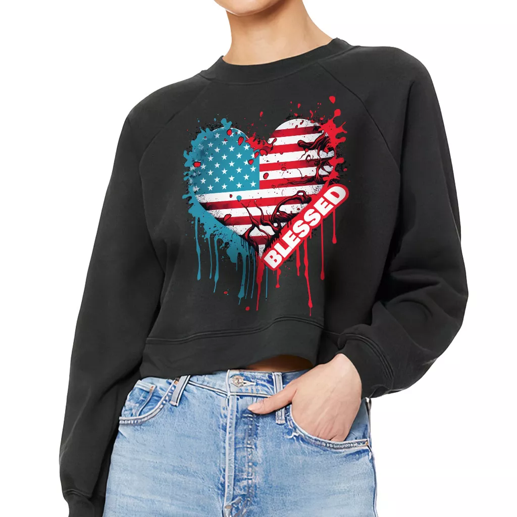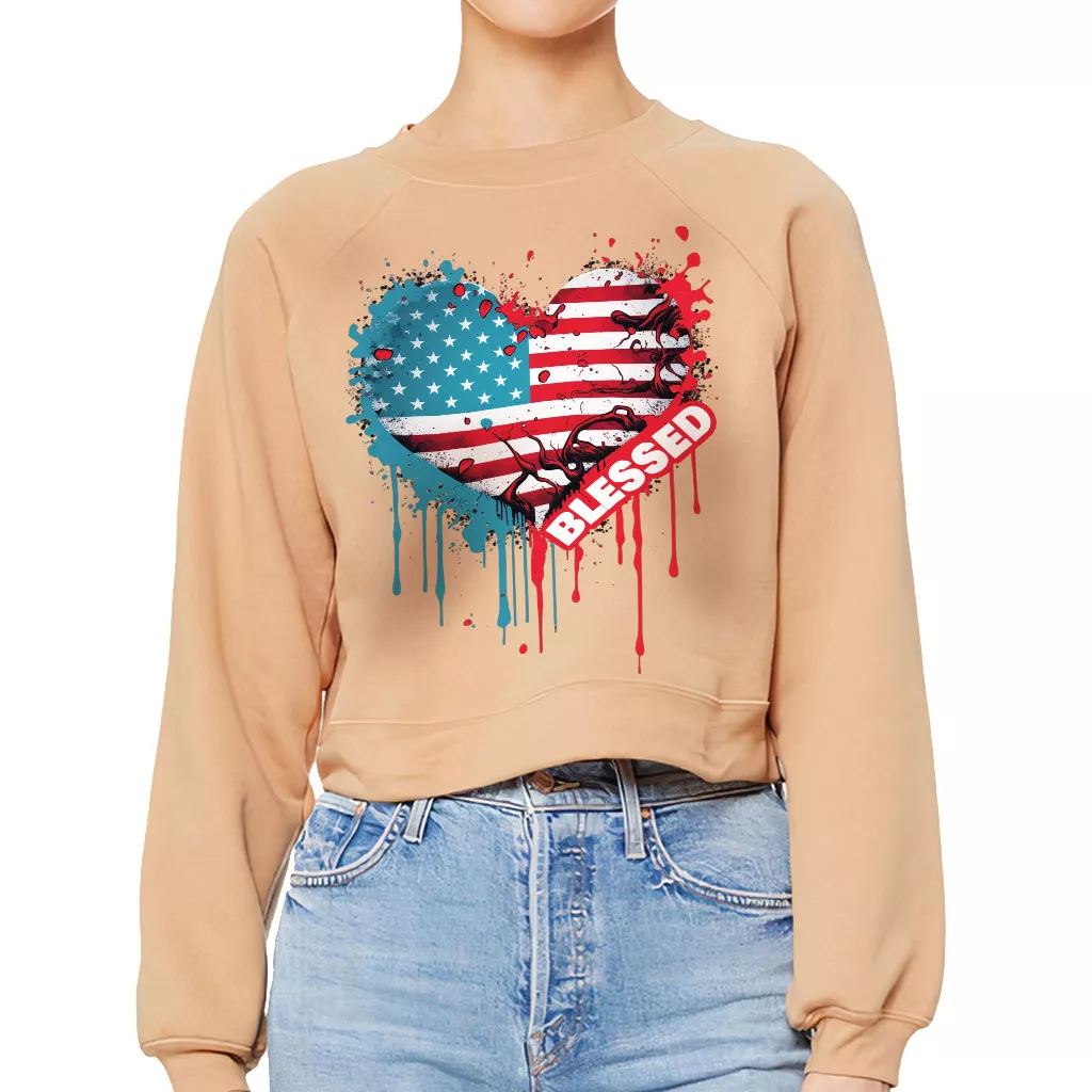 American Flag Raglan Pullover – Blessed Women’s Sweatshirt – Heart Pullover