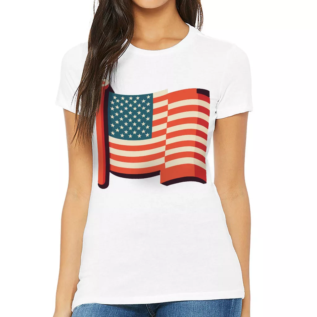 American Flag Slim Fit T-Shirt – Trendy Women’s T-Shirt – USA Themed Slim Fit Tee