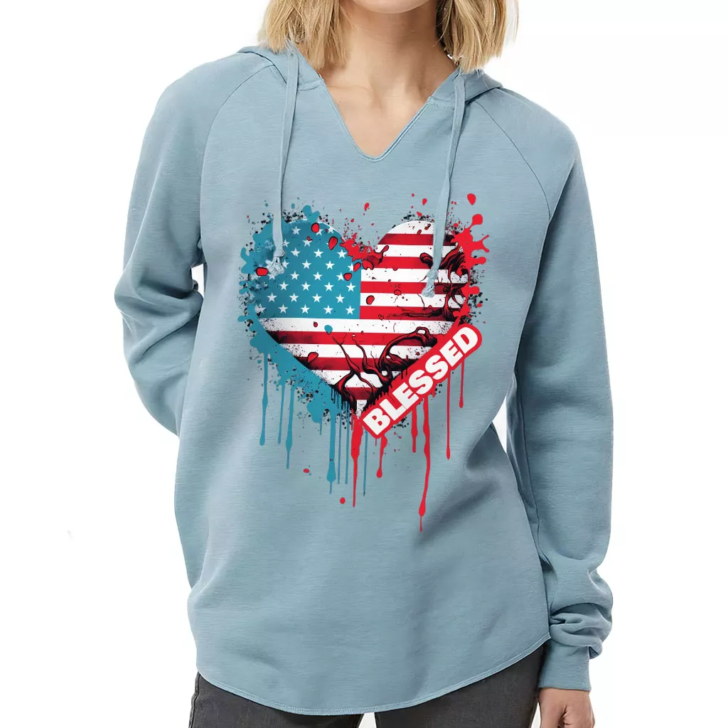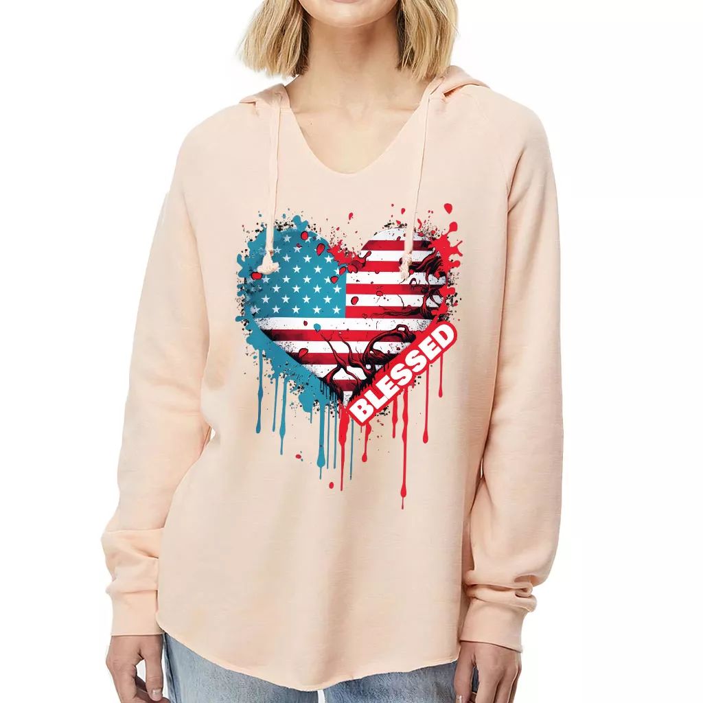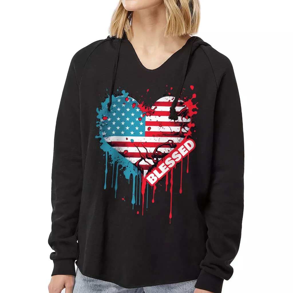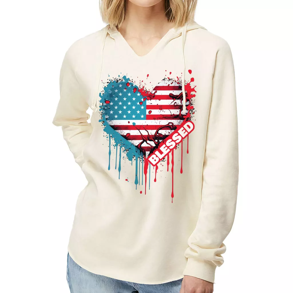 American Flag Wave Wash Hoodie – Blessed Hooded Sweatshirt – Heart Hoodie