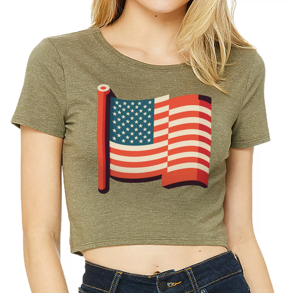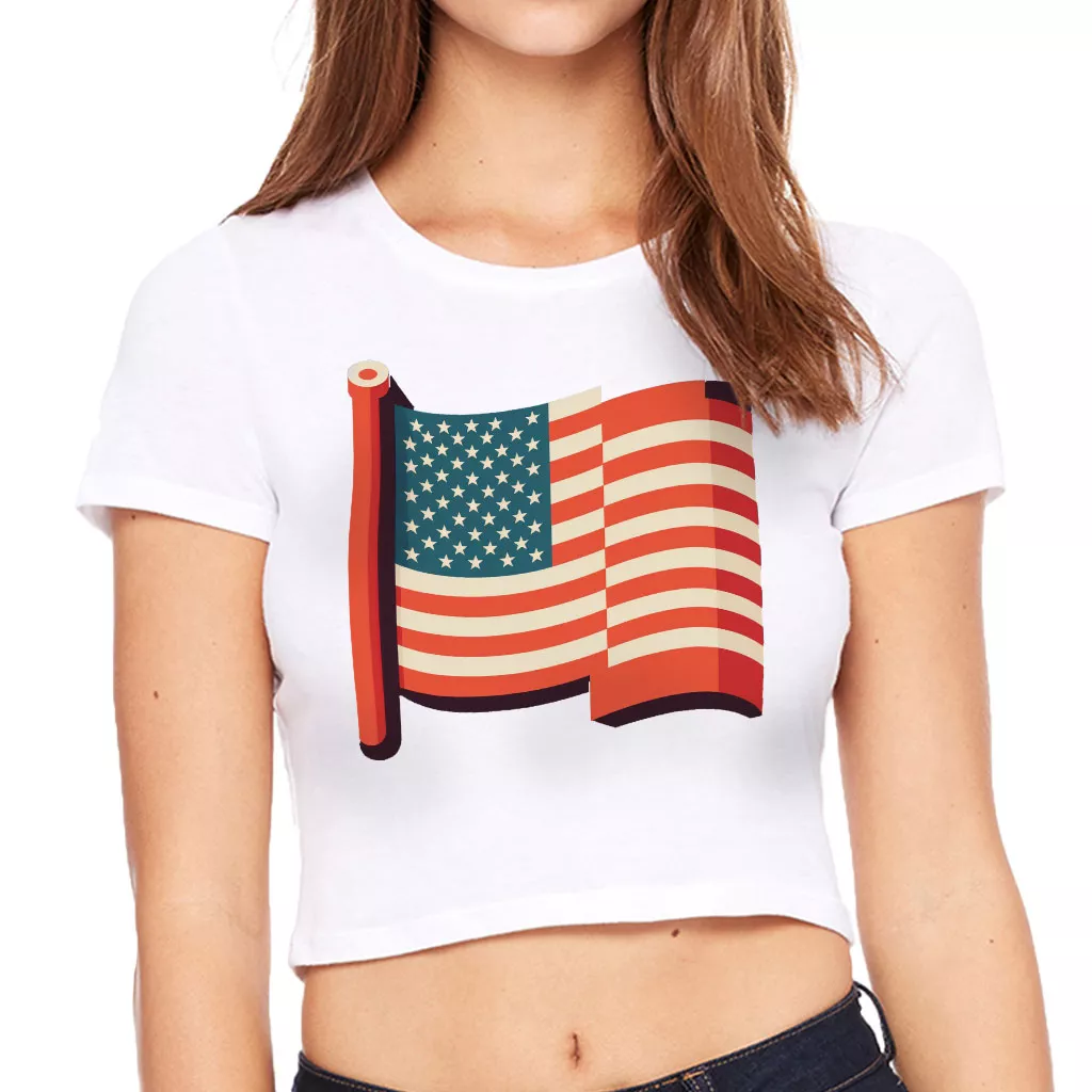 American Flag Women’s Cropped T-Shirt – Trendy Crop Top – USA Themed Cropped Tee