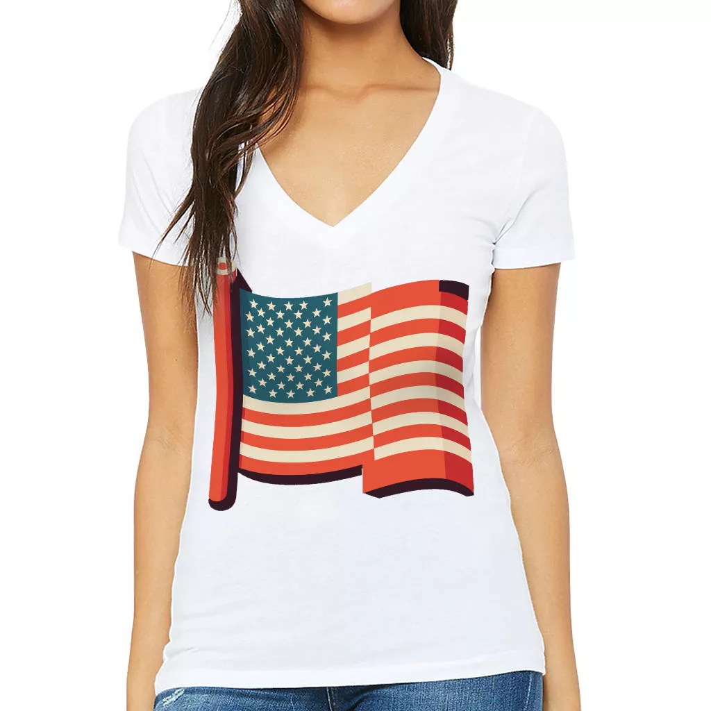 American Flag Women’s V-Neck T-Shirt – Trendy V-Neck Tee – USA Themed T-Shirt