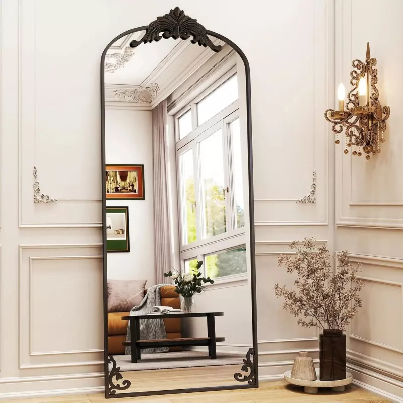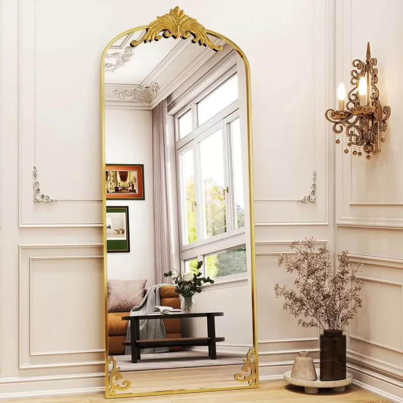 This full-length mirror is the ideal blend of beauty and practicality. Its classic arched shape and removable decorative element allow you to tailor it to fit your interior design, whether you prefer a more modern or vintage look. The high-definition glass ensures you always get a clear, true-to-life reflection, making it perfect for getting dressed, applying makeup, or even checking your posture. The explosion-proof film on the back provides an extra layer of safety, so you can feel confident that it will stay intact in the event of an accident.