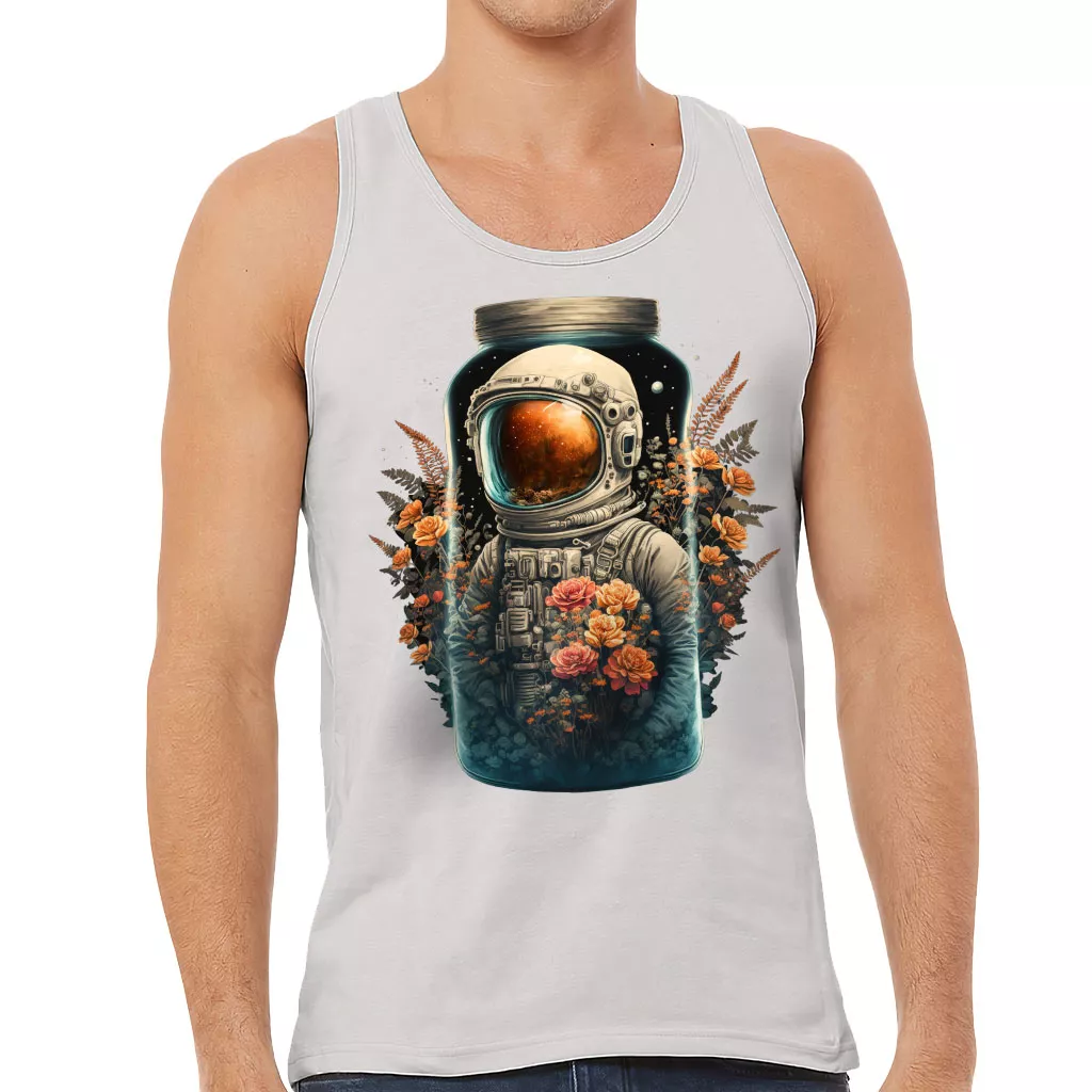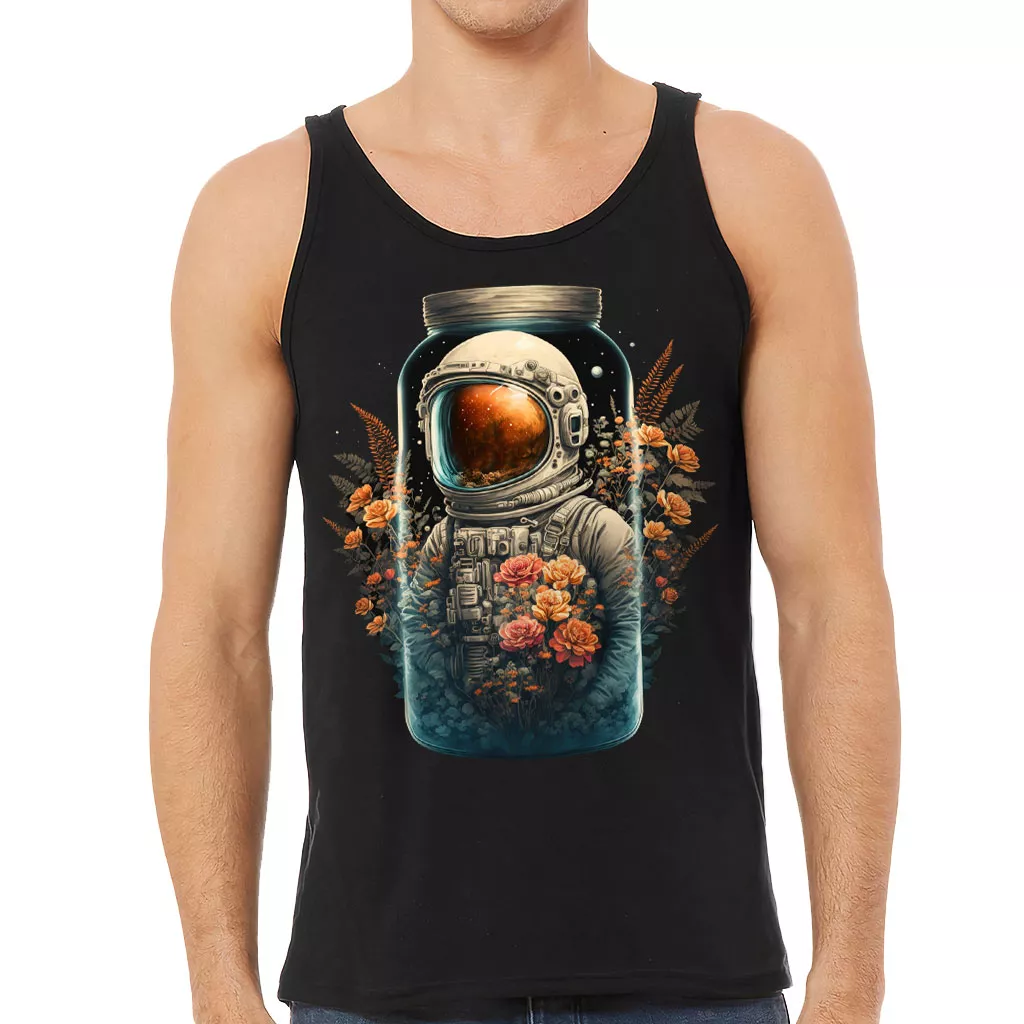 Astronaut Print Tank – Floral Workout Tank – Illustration Jersey Tank