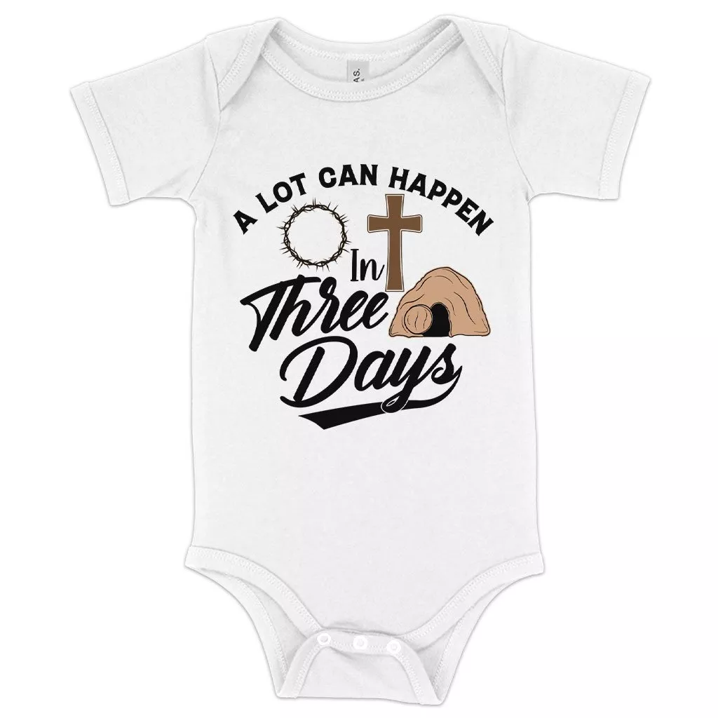 Baby Jersey A Lot Can Happen in 3 Days Onesie – Christian Onesies – Religious Onesies
