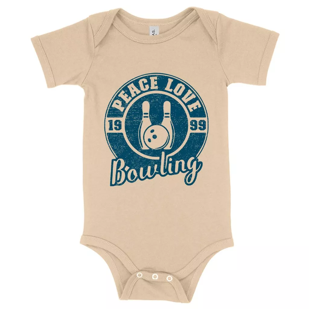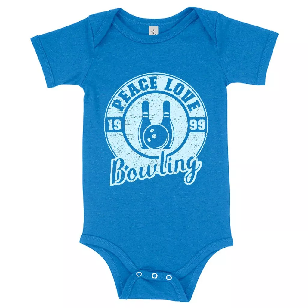Baby Jersey Peace Love Bowling Onesie – Bowling Onesie Design – Bowling Themed Onesies