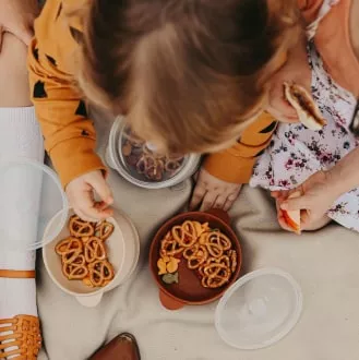 This bowl fits perfectly at the bottom of your diaper bag, and it has a lid, so bringing snacks on the go has never been easier. The lid is air tight, keeping food fresh and creating less waste.