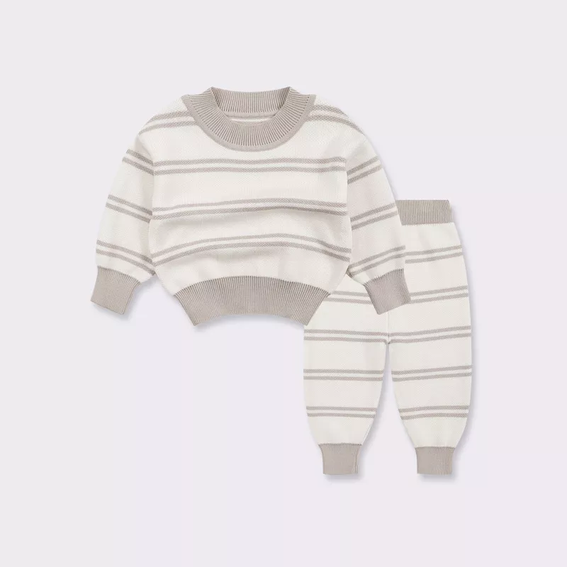 This knitwear set is more than just a baby outfit – it’s a blend of practicality and charm. The soft cotton material ensures your child stays comfortable, while the adorable striped design makes them the star of every gathering. The O-neck collar and pullover closure make dressing your baby quick and hassle-free.