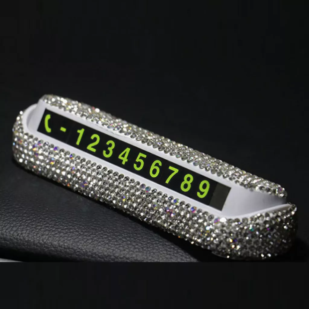 Whether your car is blocking someone else’s in a parking lot or should an emergency occur, leaving your number somewhere in your car can help diffuse a troubling situation (or danger). Let our Bedazzled Phone Number Placard give you a helping hand.