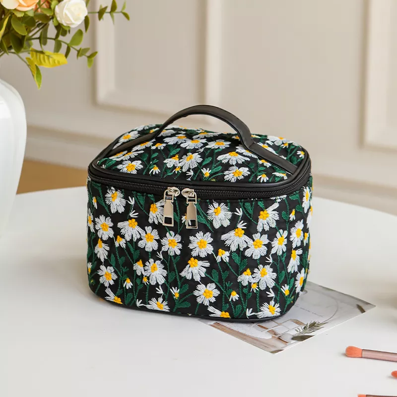 Whether you’re prepping for a weekend getaway, freshening up at work, or just need a sleek organizer at home, this Beige Daisy Embroidered Makeup Bag is the perfect solution. Its stylish design and practical features make it a must-have for anyone who loves to stay organized and look good doing it.