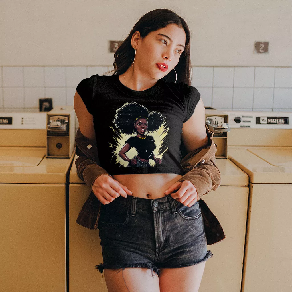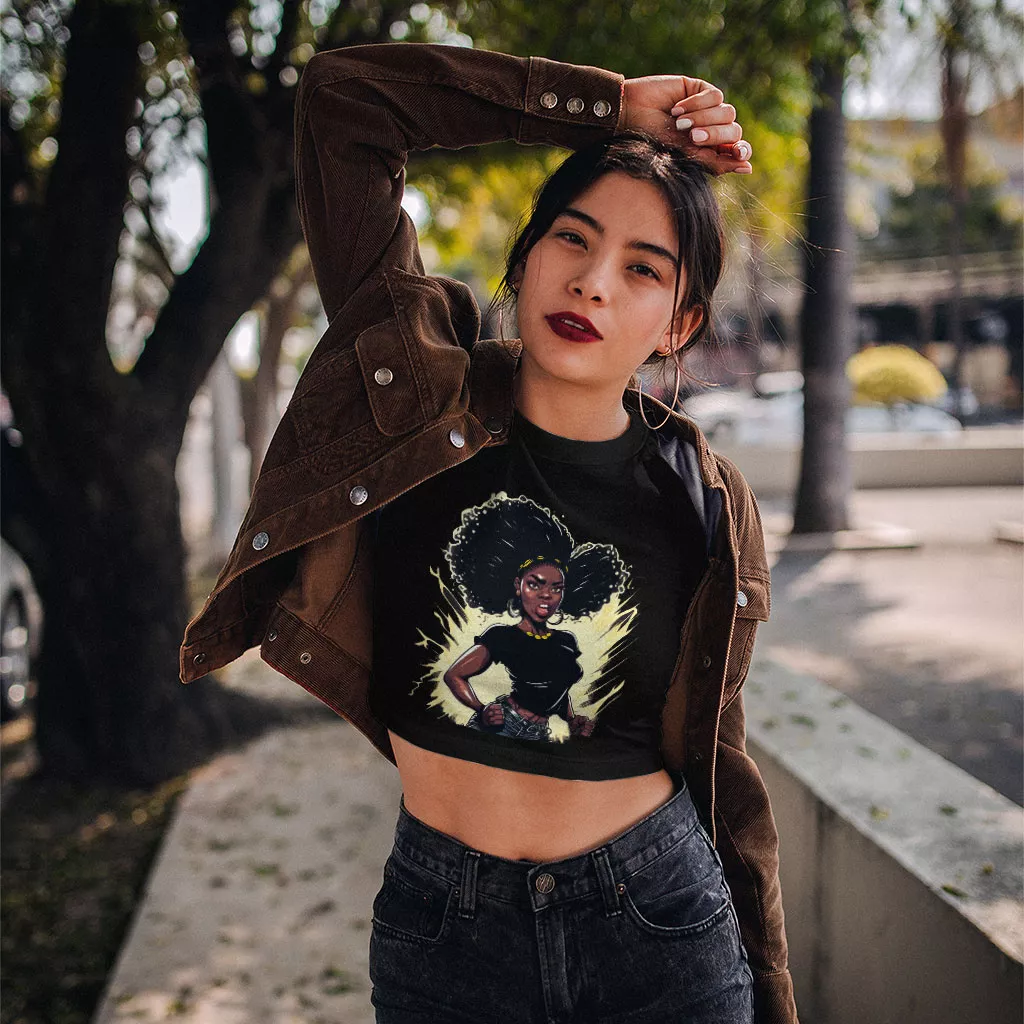 Black Girl Power Women’s Cropped T-Shirt – Printed Crop Top – Cartoon Crop Tee Shirt