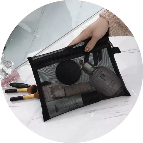 This bag is big enough for all your toiletries and larger beauty items, including serums, toners, and creams. Size: 9.4 in.*7 in.*0.8 in.