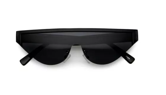 The cat-eye shape of our Black & Smoke Rimless Flat-Top Futuristic Sunglasses gives you that in-the-know, up-to-the-minute look that will have everyone asking “where did you get those?”