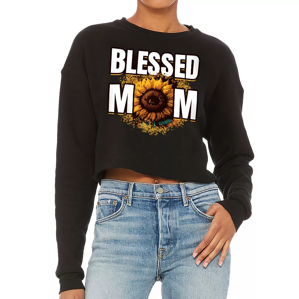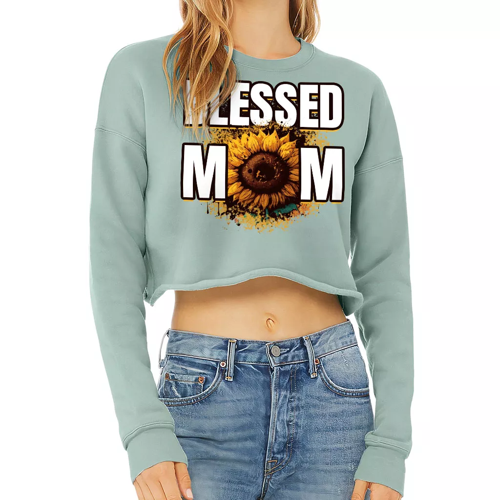 Blessed Mom Cropped Sweatshirt – Sunflower Women’s Sweatshirt – Cute Crop Crew Sweatshirt