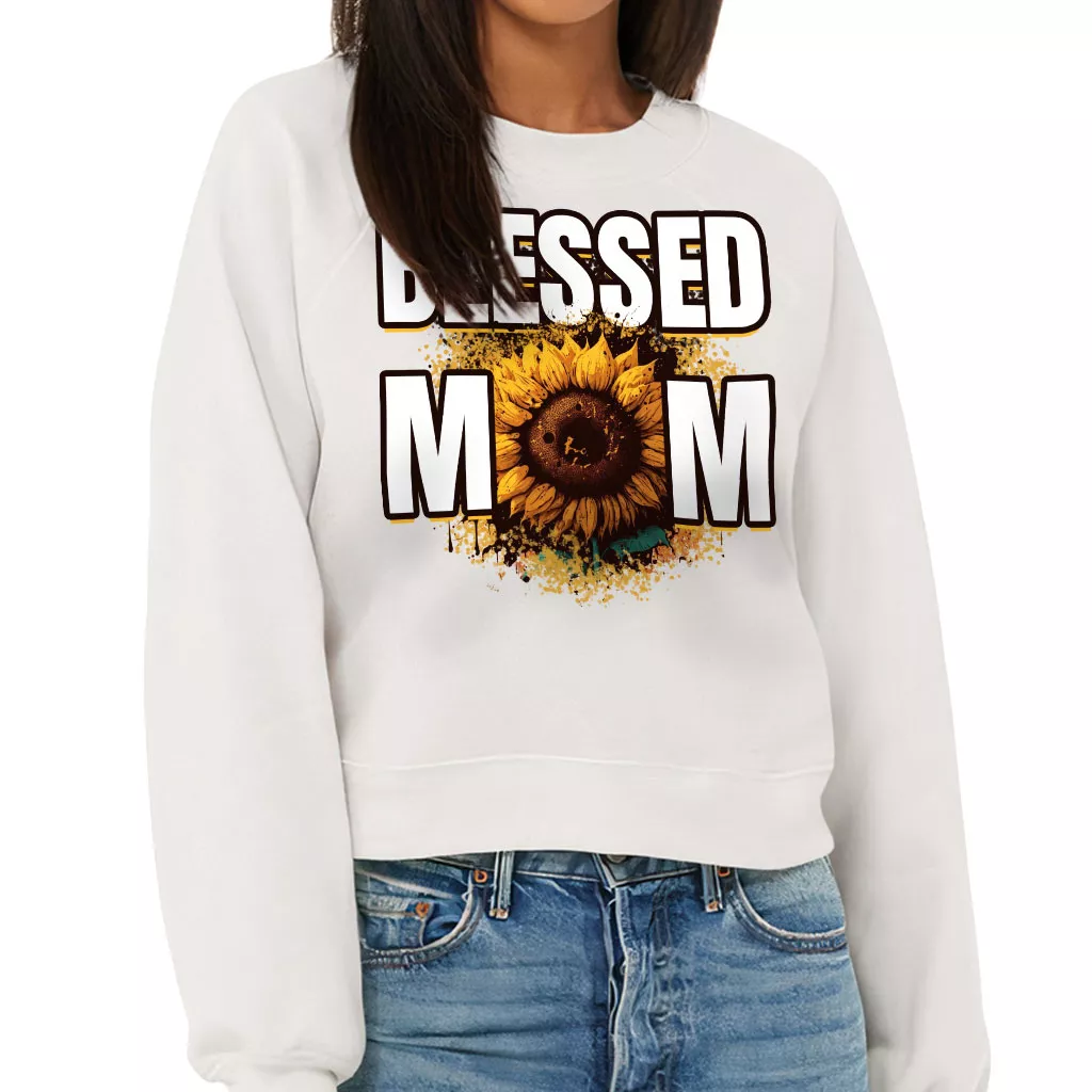 Blessed Mom Raglan Pullover – Sunflower Women’s Sweatshirt – Cute Pullover