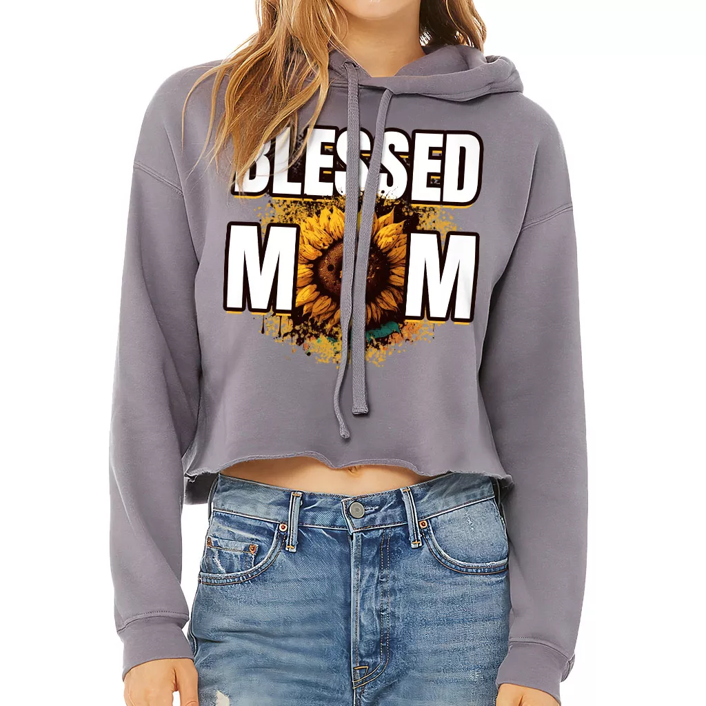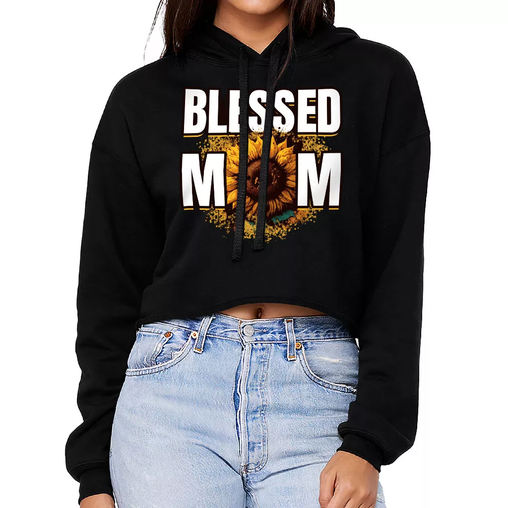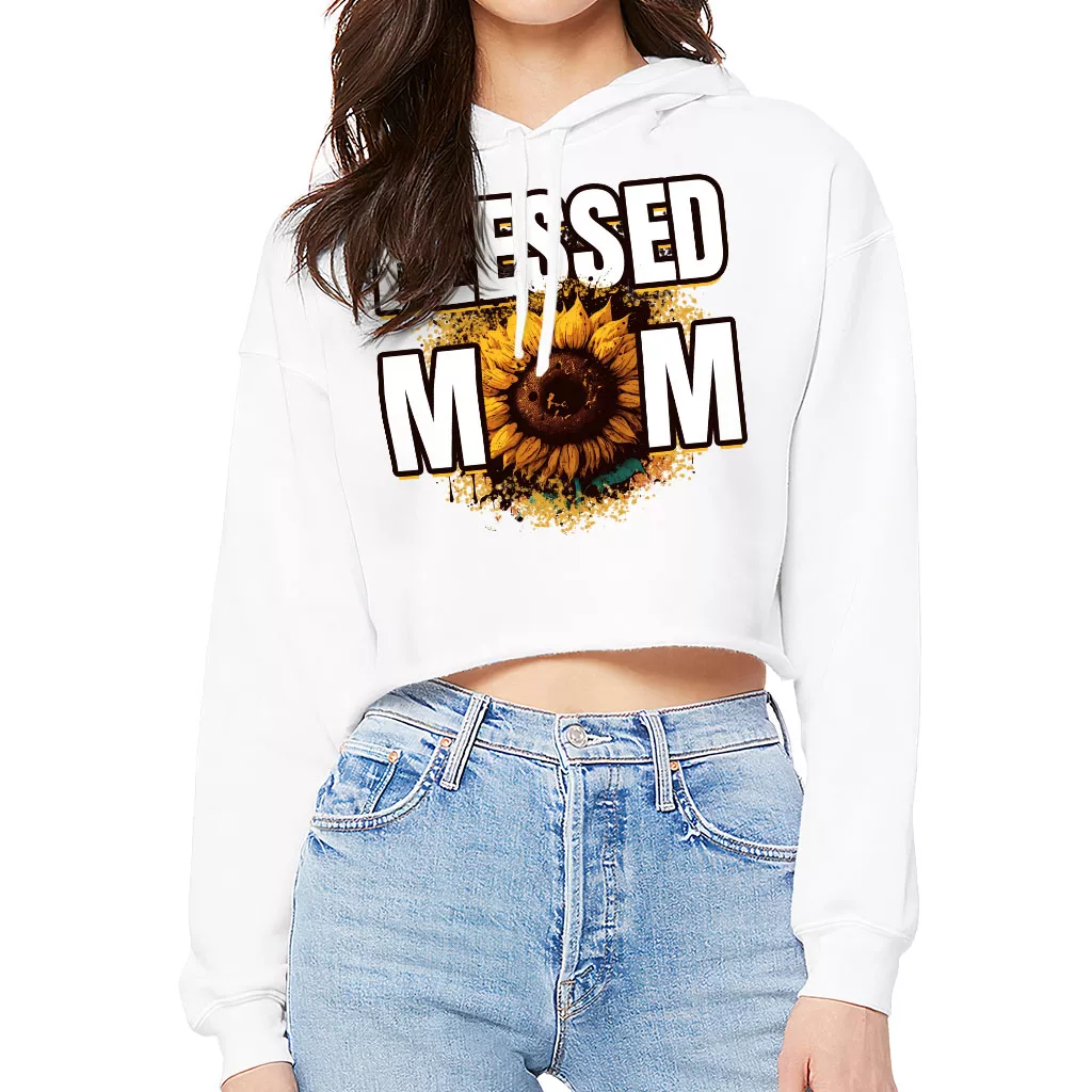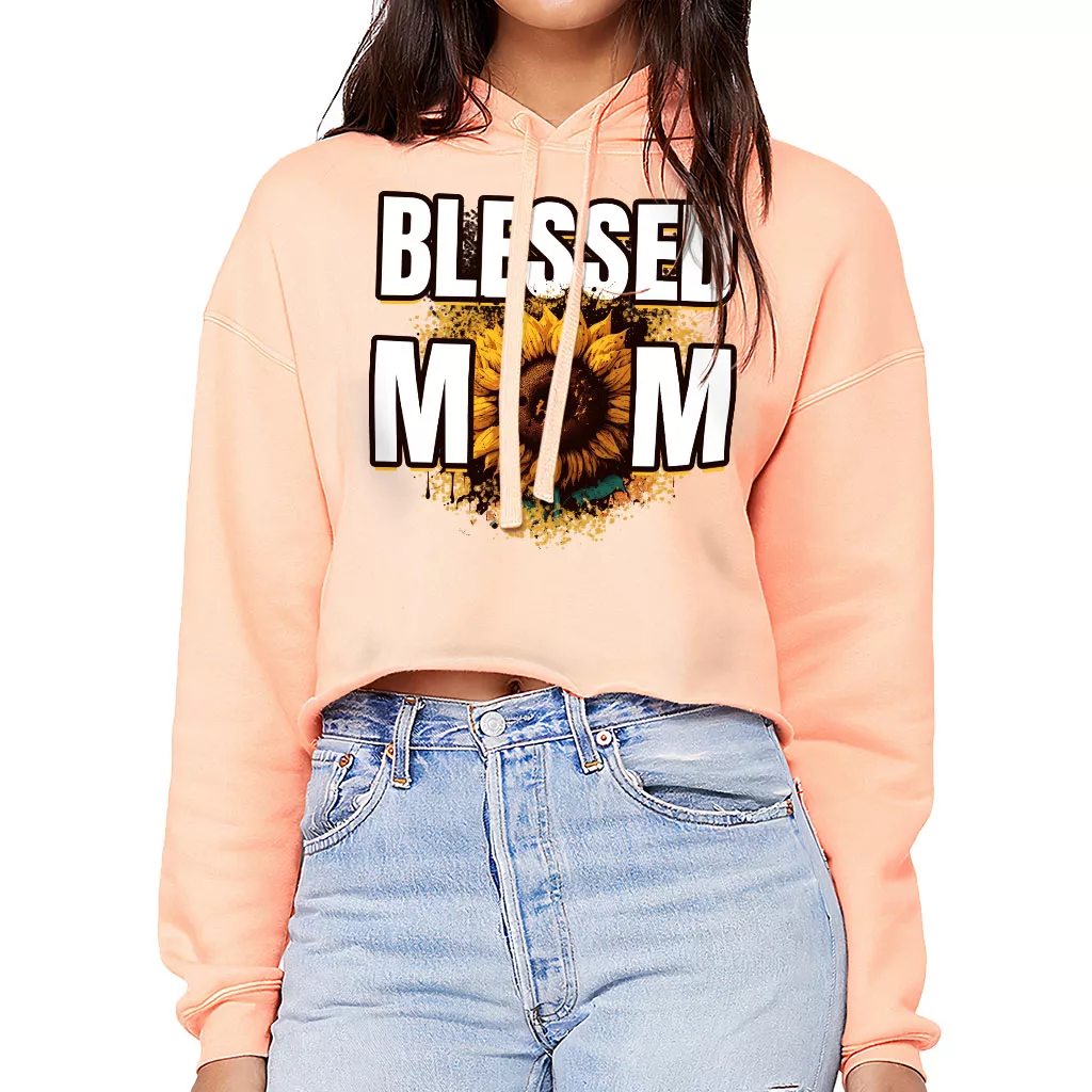 Blessed Mom Women’s Cropped Hoodie – Sunflower Cropped Hoodie – Cute Hooded Sweatshirt