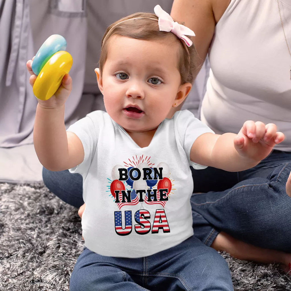 Born in the USA Baby Jersey Onesie – American Flag Baby Bodysuit – Patriotic Baby One-Piece