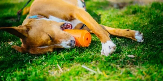 The flyer is made for retrieving. It is not a chew toy. Do not leave your dog unattended with the Bottle Top Flyer.