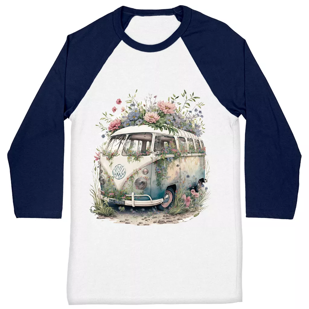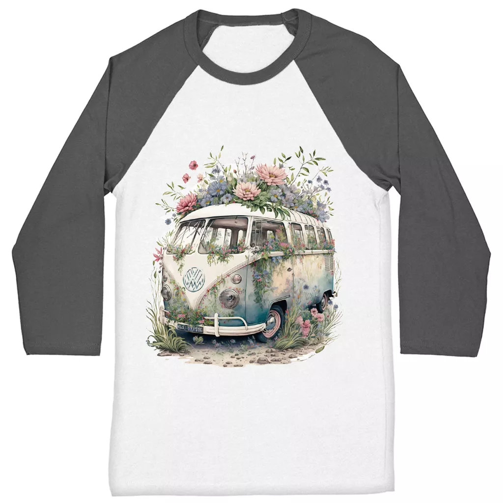 Bus Baseball T-Shirt – Floral Design T-Shirt – Graphic Baseball Tee