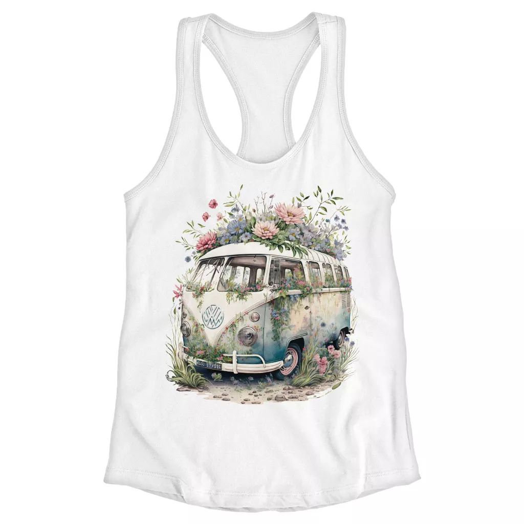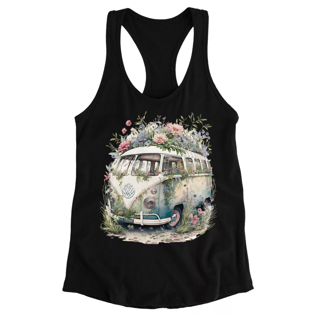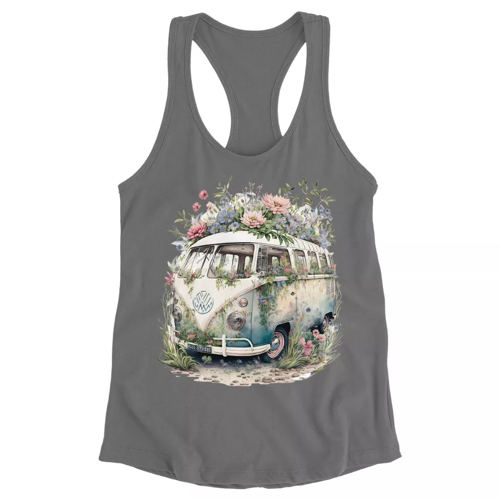 Bus Racerback Tank – Floral Design Tank – Graphic Workout Tank