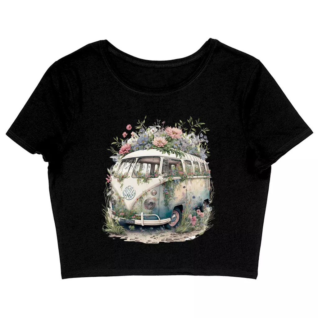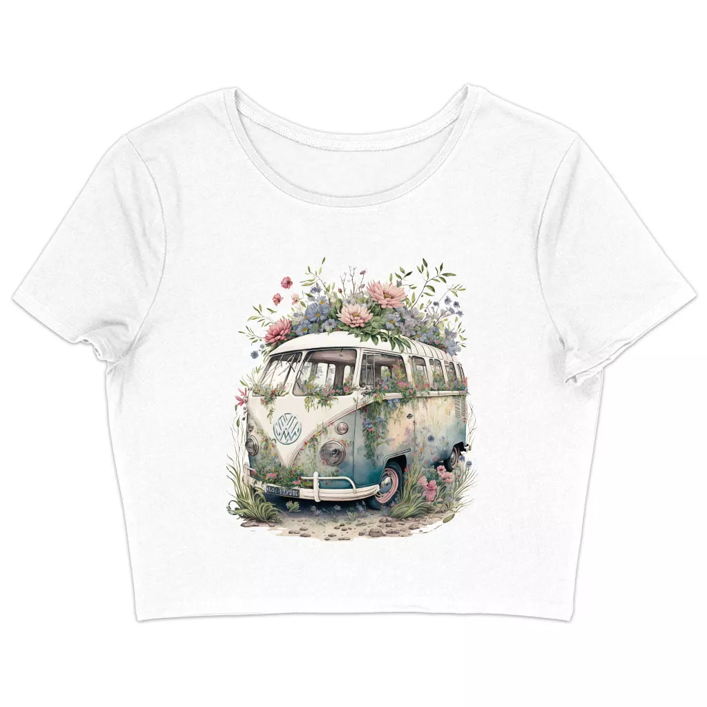 Bus Women’s Cropped T-Shirt – Floral Design Crop Top – Graphic Cropped Tee