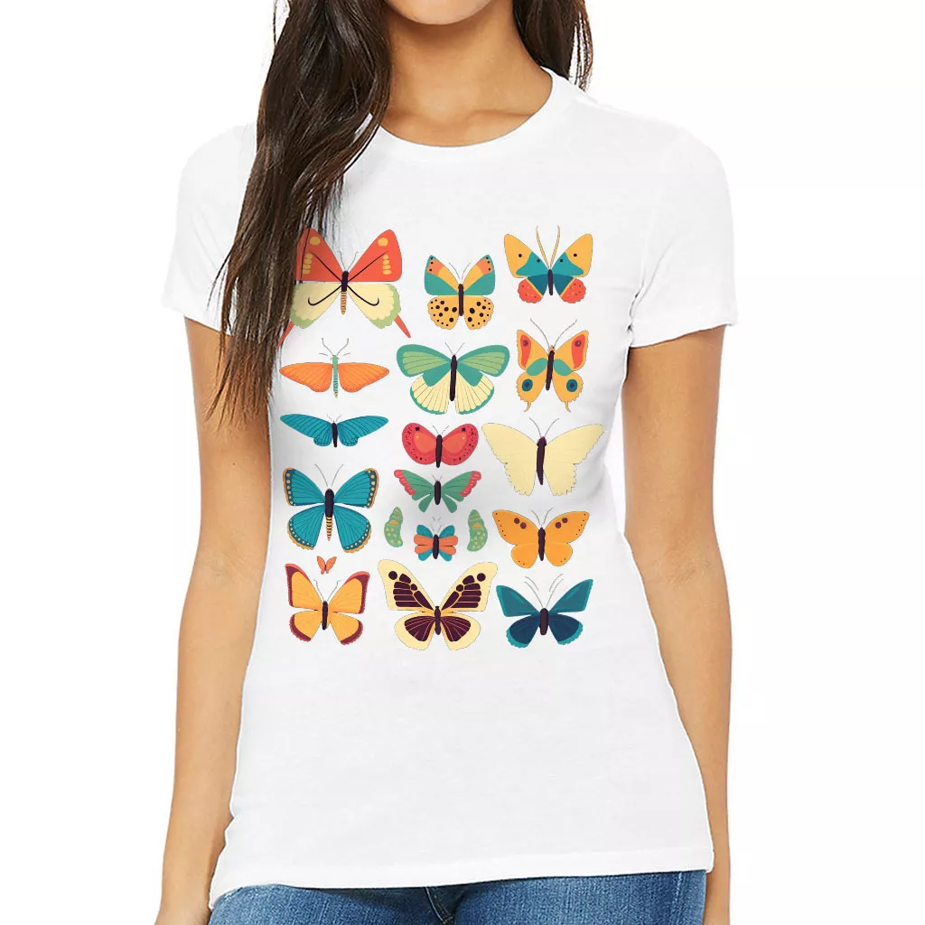 Butterfly Print Slim Fit T-Shirt – Cute Graphic Women’s T-Shirt – Best Print Slim Fit Tee
