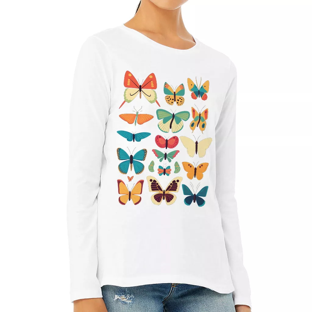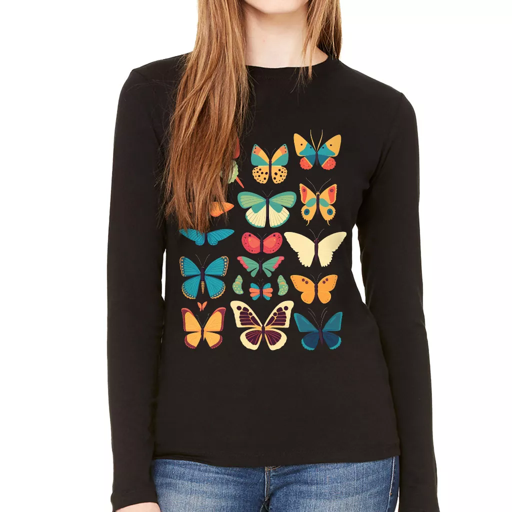 Butterfly Print Women’s Long Sleeve T-Shirt – Cute Graphic Long Sleeve Tee – Best Print T-Shirt