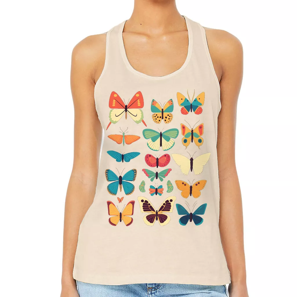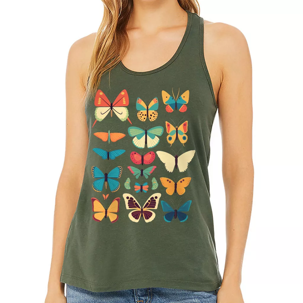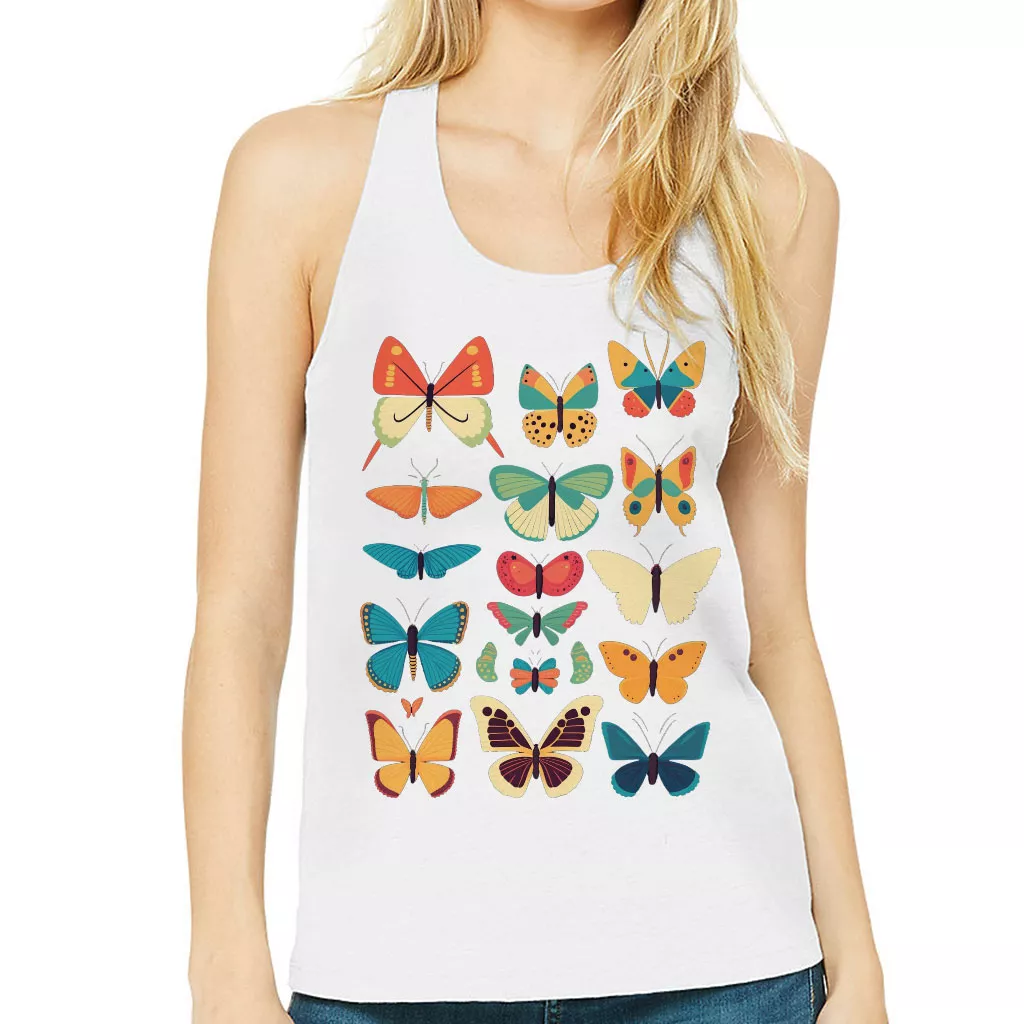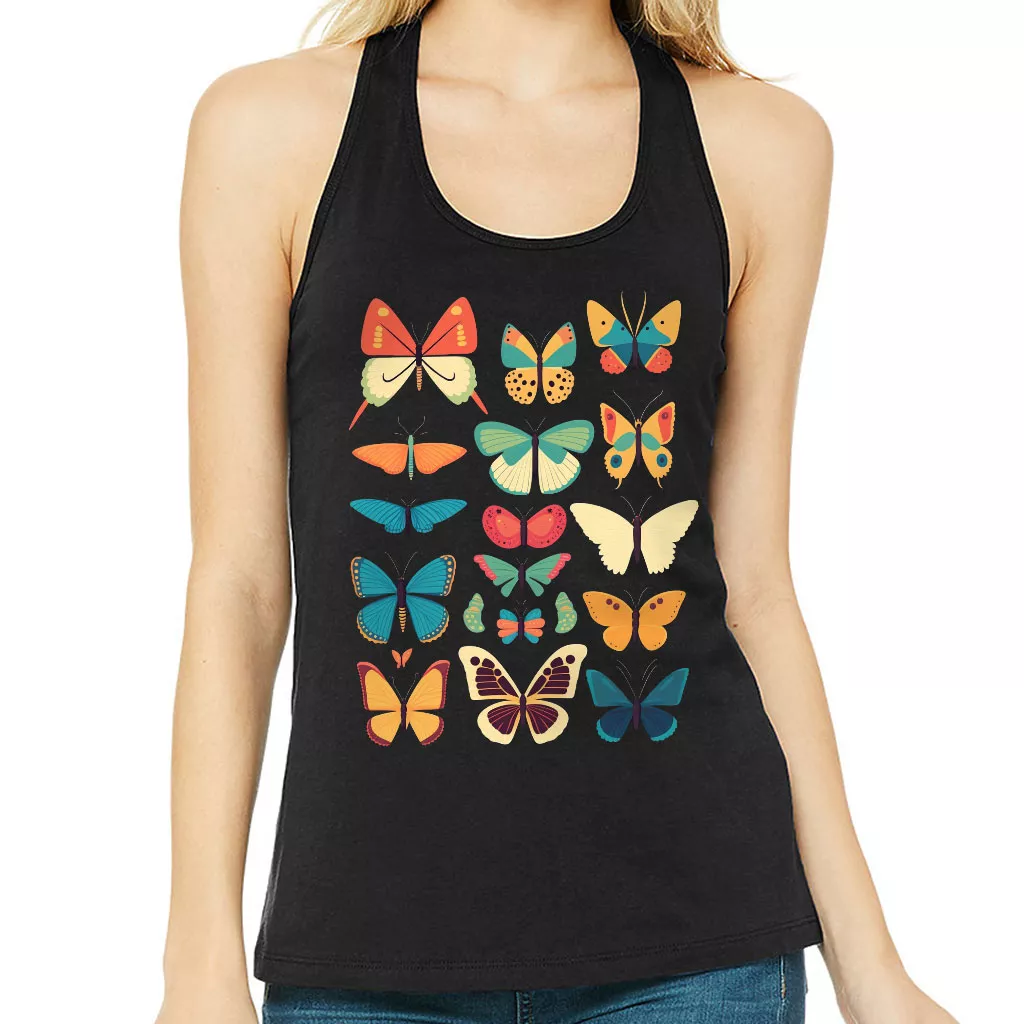 Butterfly Print Women’s Racerback Tank – Cute Graphic Tank Top – Best Print Workout Tank