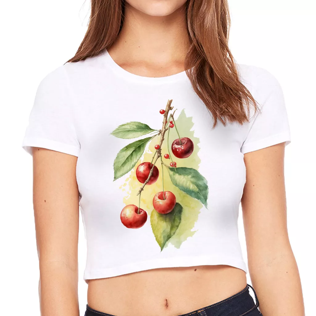 Cherry Print Women’s Cropped T-Shirt – Cute Crop Top – Themed Cropped Tee