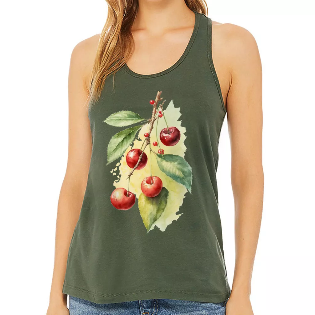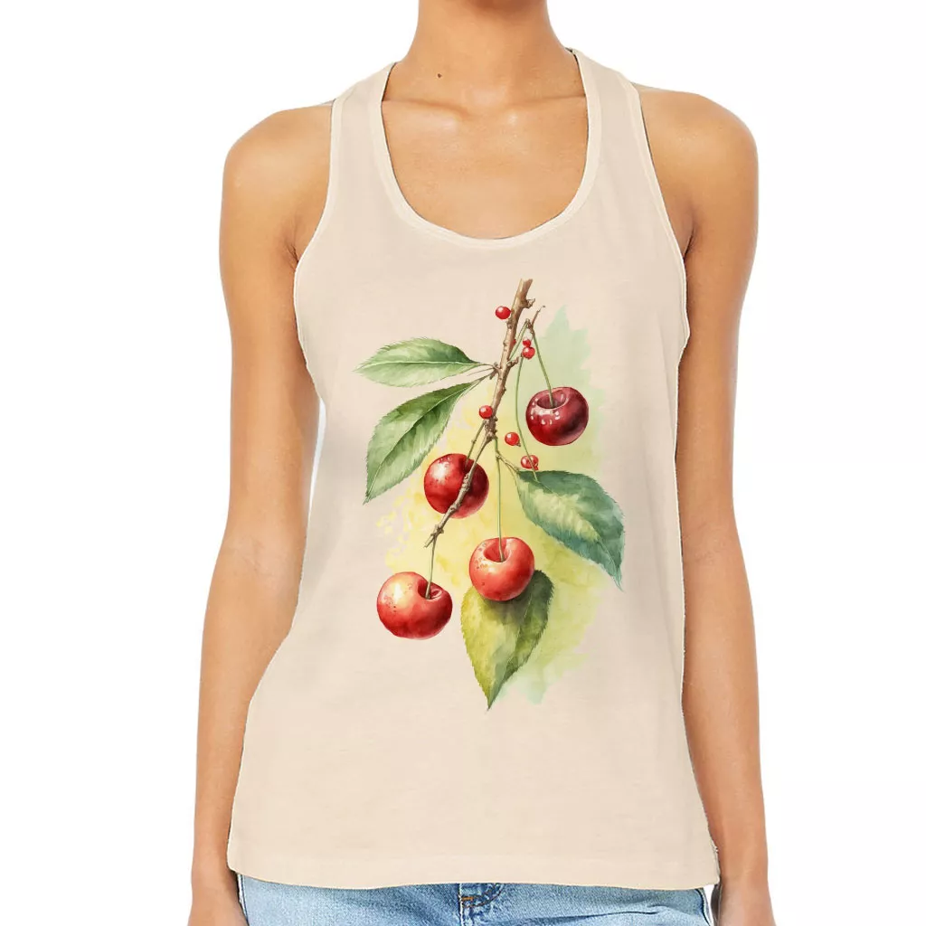 Cherry Print Women’s Racerback Tank – Cute Tank Top – Themed Workout Tank
