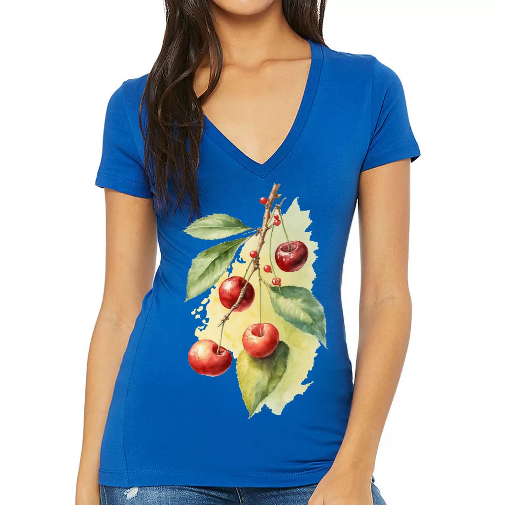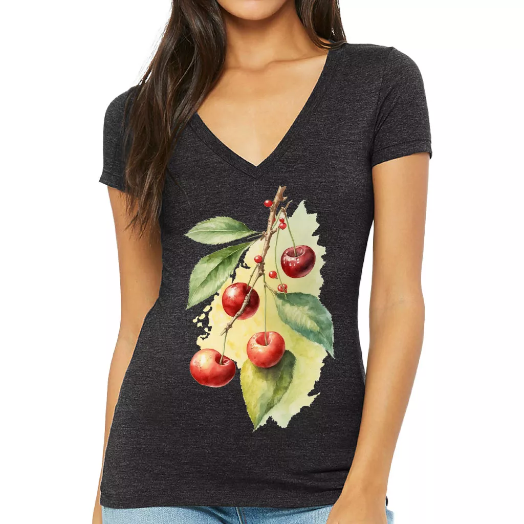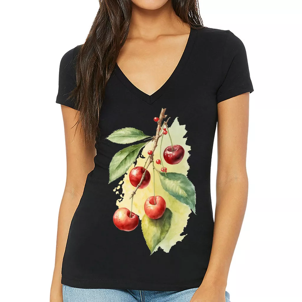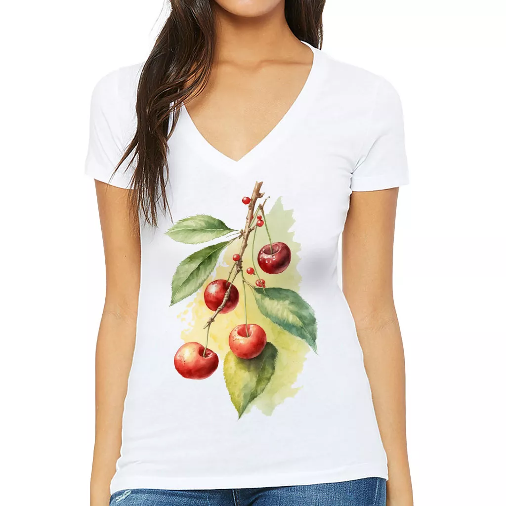 Cherry Print Women’s V-Neck T-Shirt – Cute V-Neck Tee – Themed T-Shirt