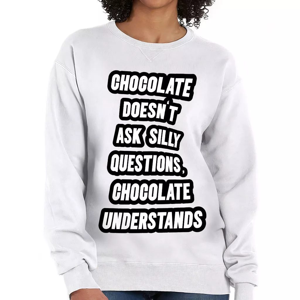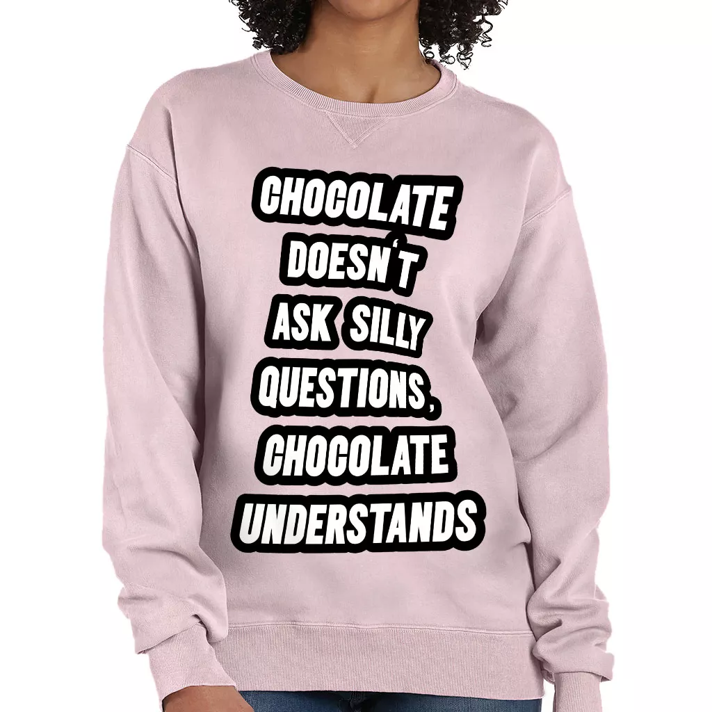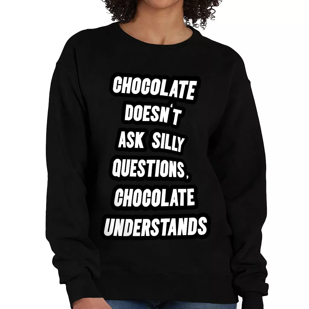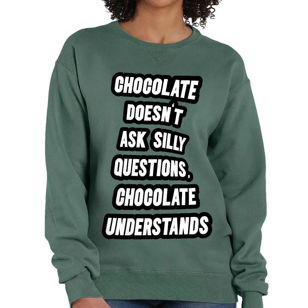 Chocolate Doesn’t Ask Silly Questions Chocolate Understands Crewneck Sweatshirt – Funny Saying Women’s Sweatshirt – Graphic Sweatshirt