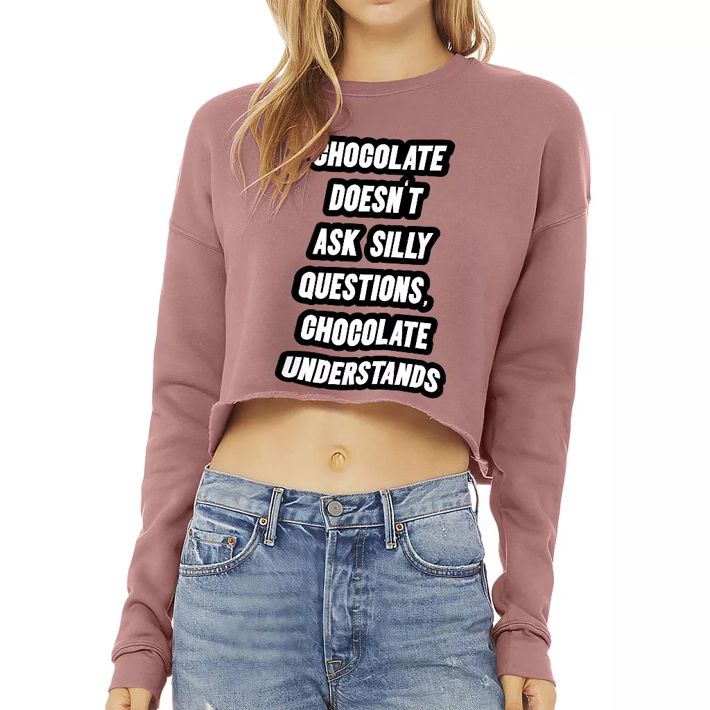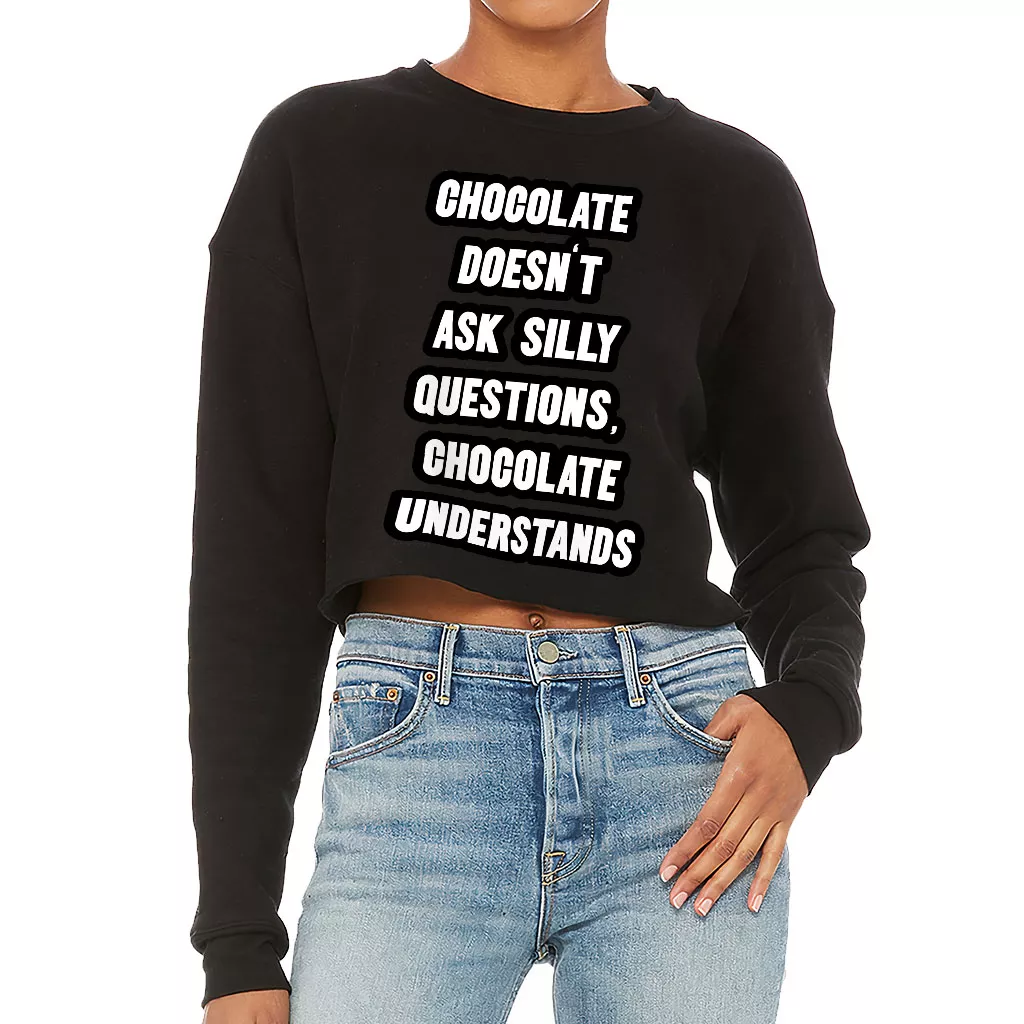 Chocolate Doesn’t Ask Silly Questions Chocolate Understands Cropped Sweatshirt – Funny Saying Women’s Sweatshirt – Graphic Crop Crew Sweatshirt