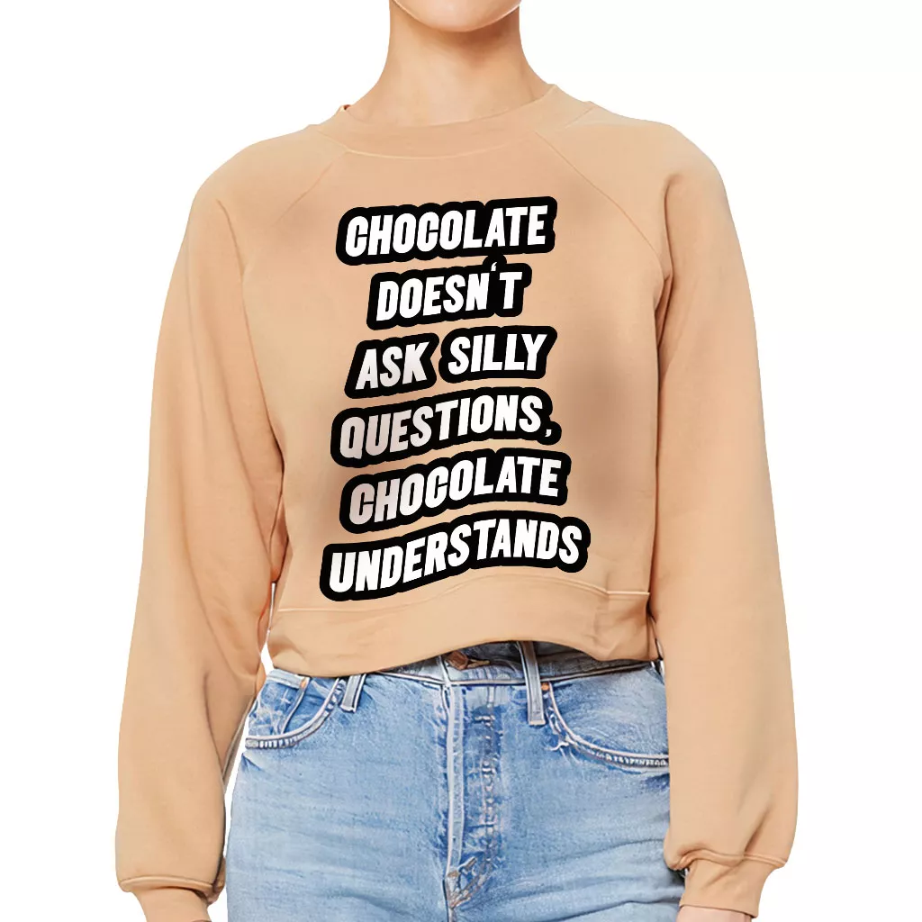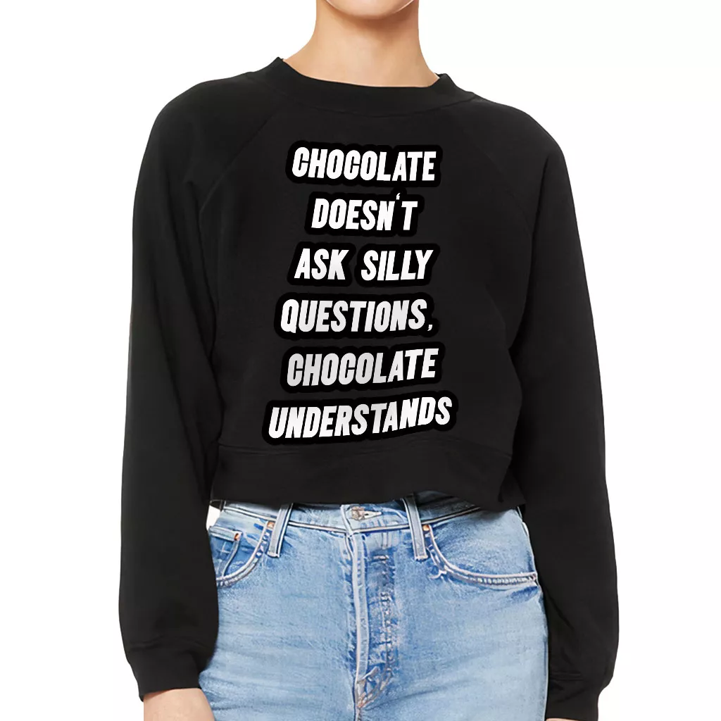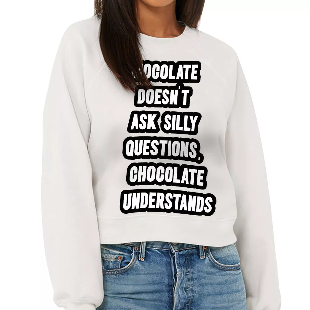 Chocolate Doesn’t Ask Silly Questions Chocolate Understands Raglan Pullover – Funny Saying Women’s Sweatshirt – Graphic Pullover
