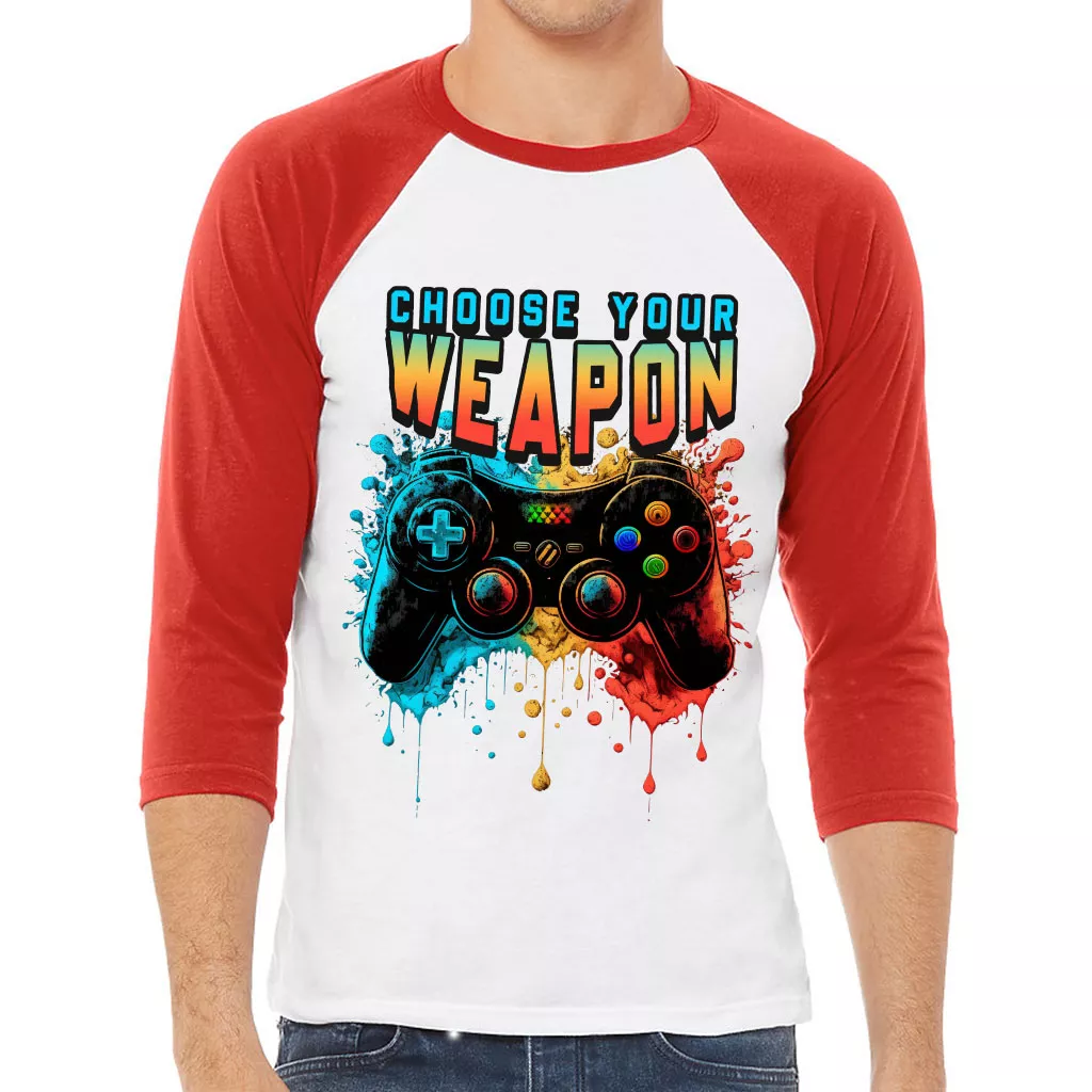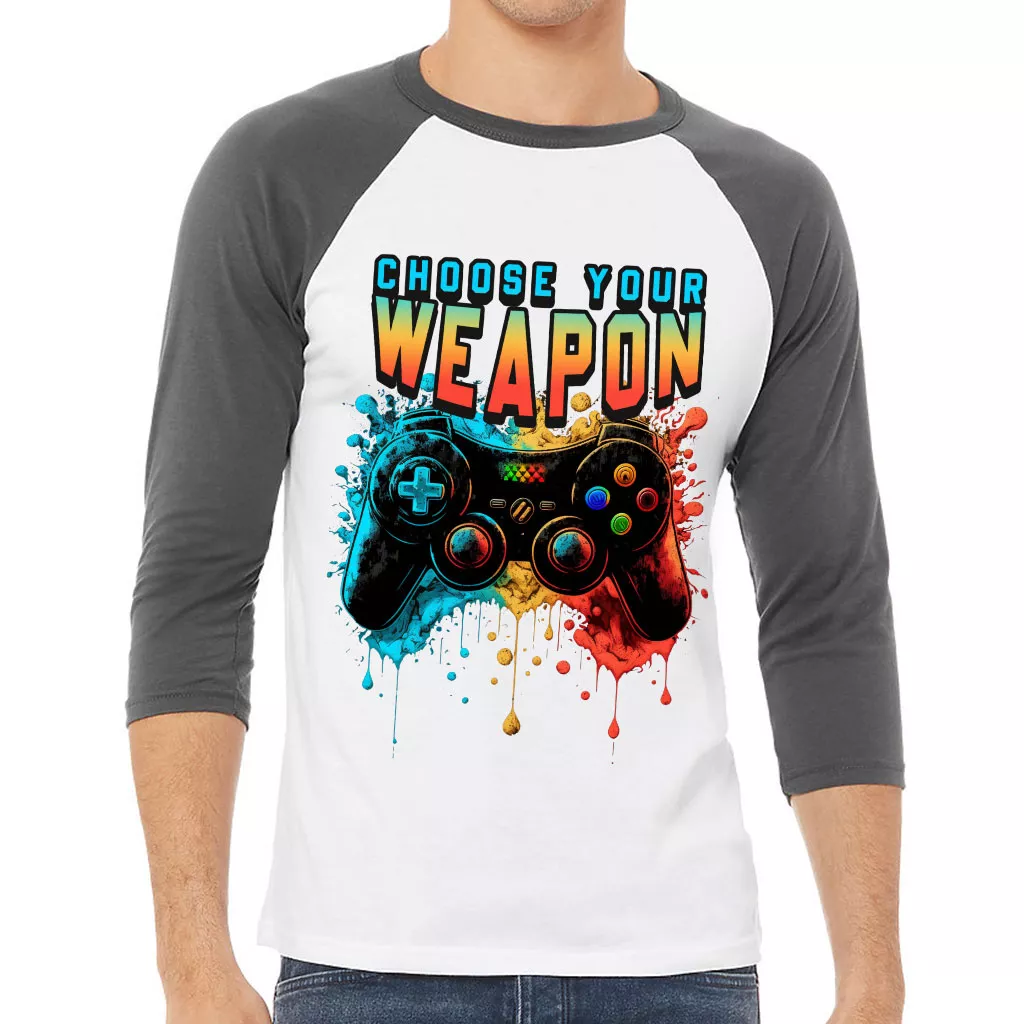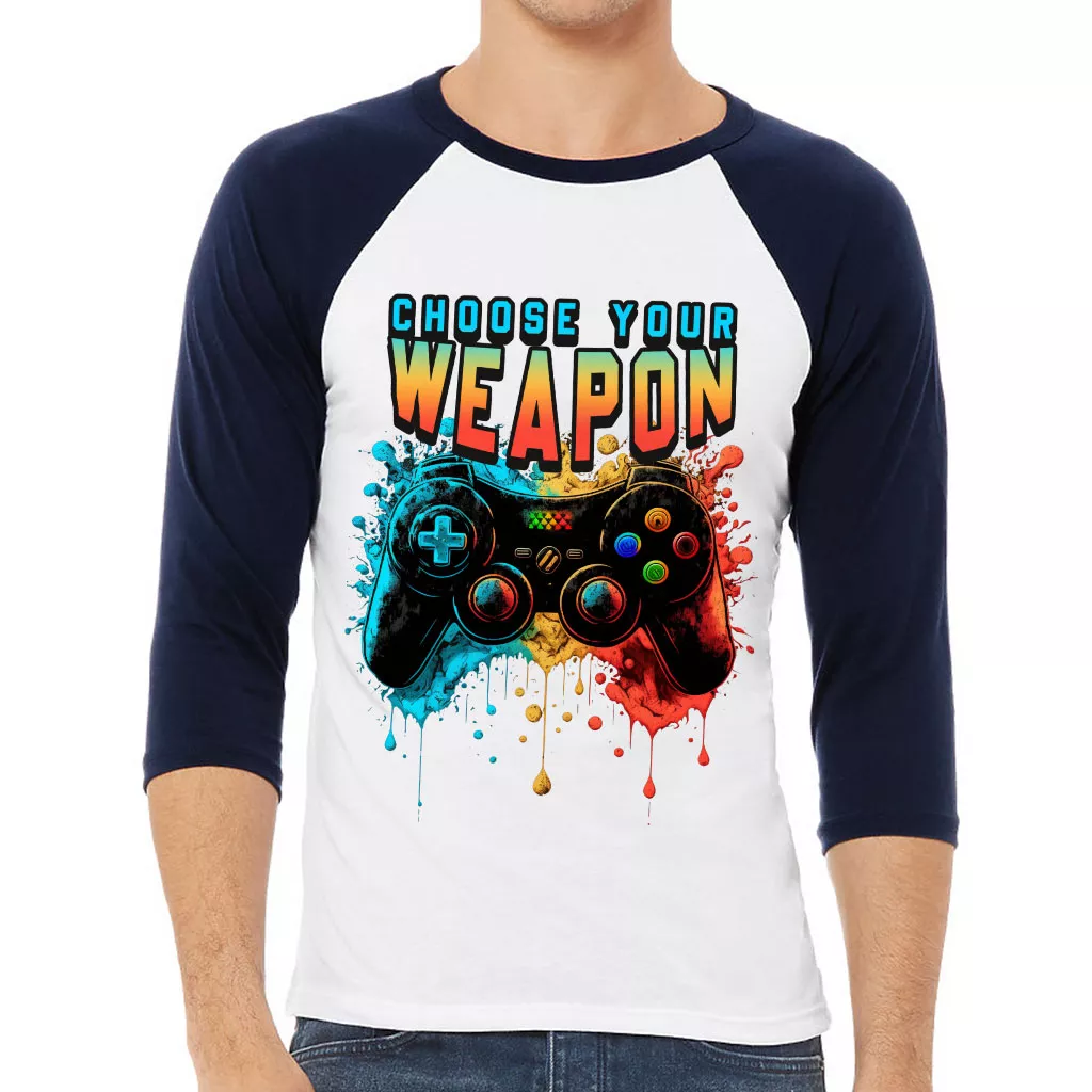 Choose Your Weapon Baseball T-Shirt – Gamer T-Shirt – Cool Art Baseball Tee
