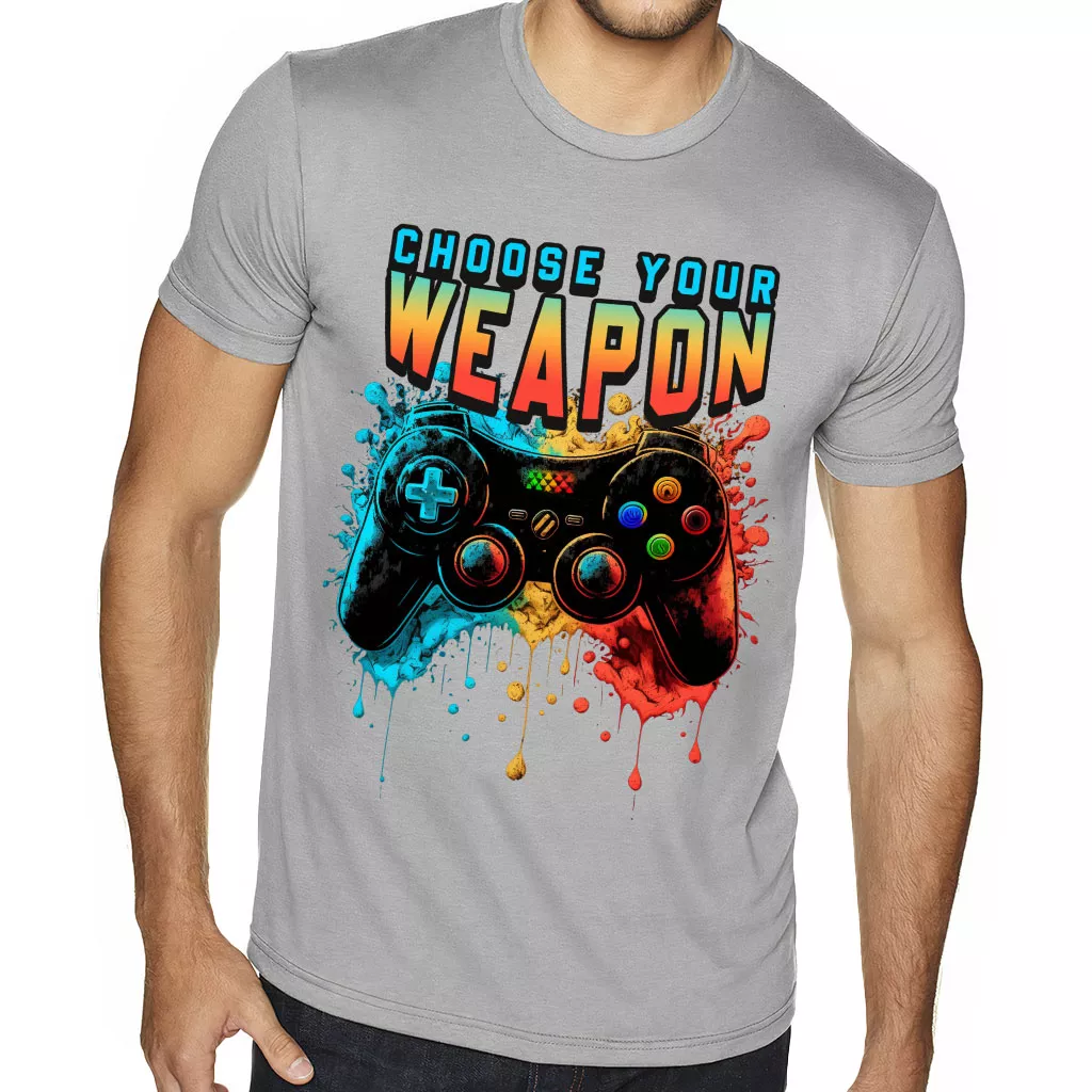 Choose Your Weapon Sueded T-Shirt – Gamer T-Shirt – Cool Art Sueded Tee