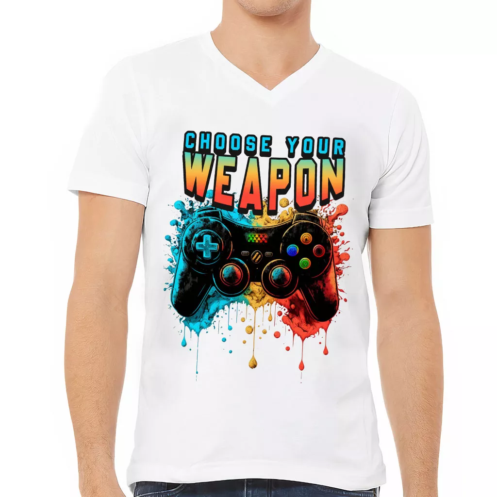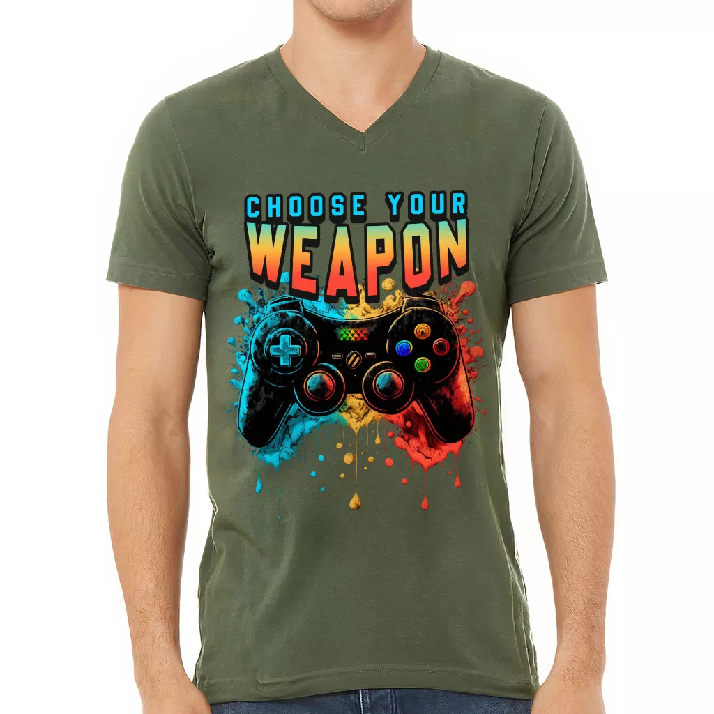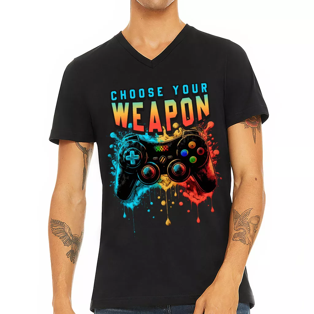 Choose Your Weapon V-Neck T-Shirt – Gamer T-Shirt – Cool Art V-Neck Tee
