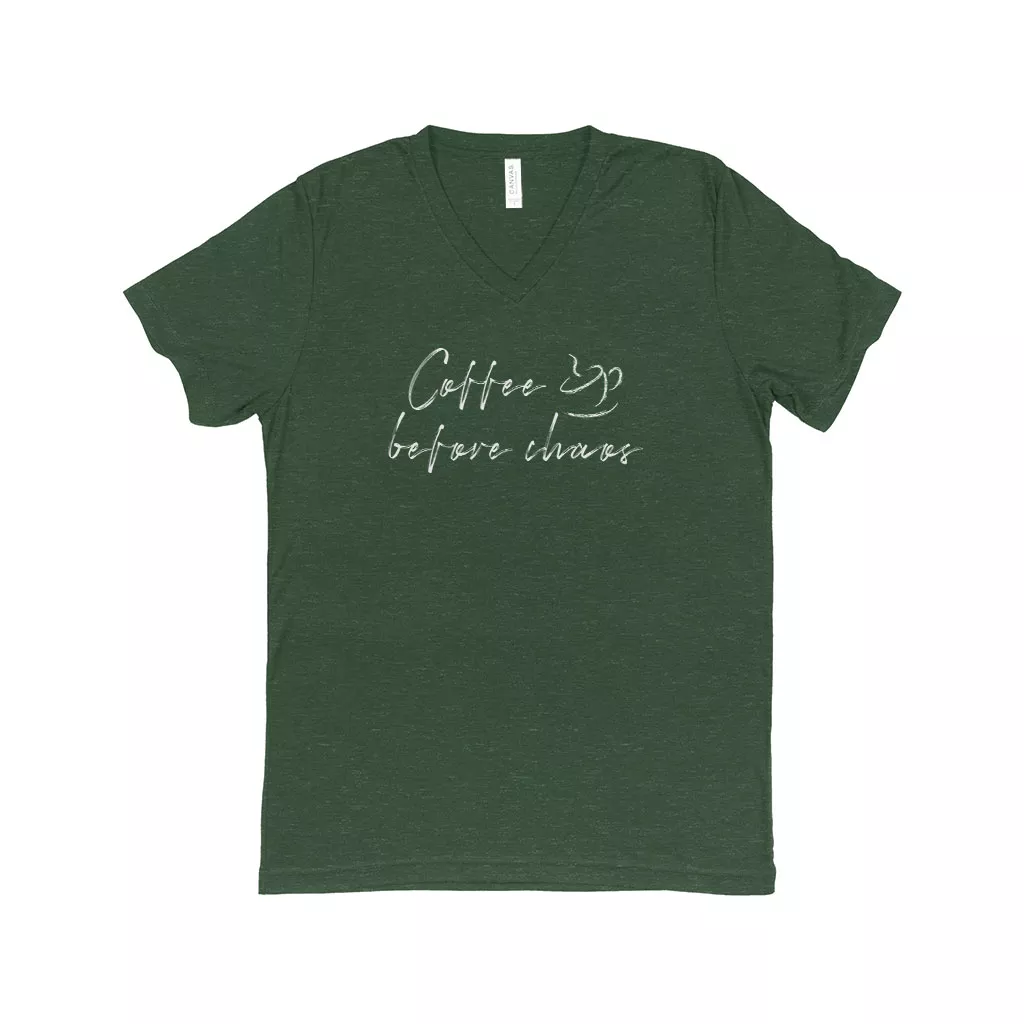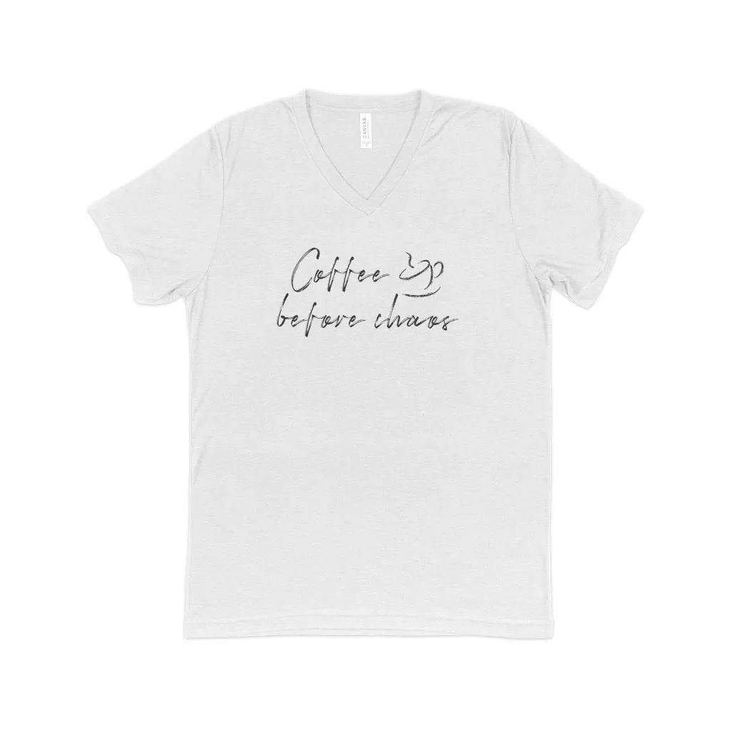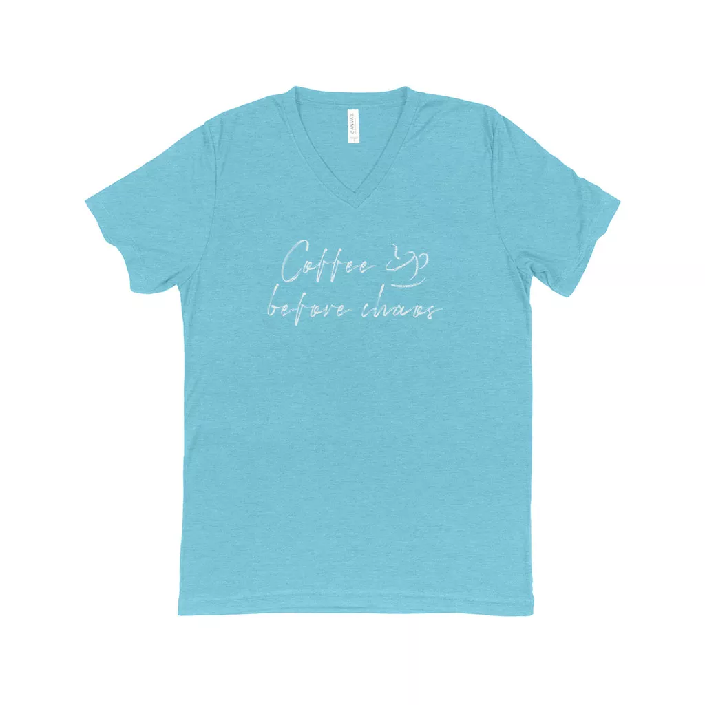 Coffee Before Chaos Unisex Triblend V-Neck T-Shirt