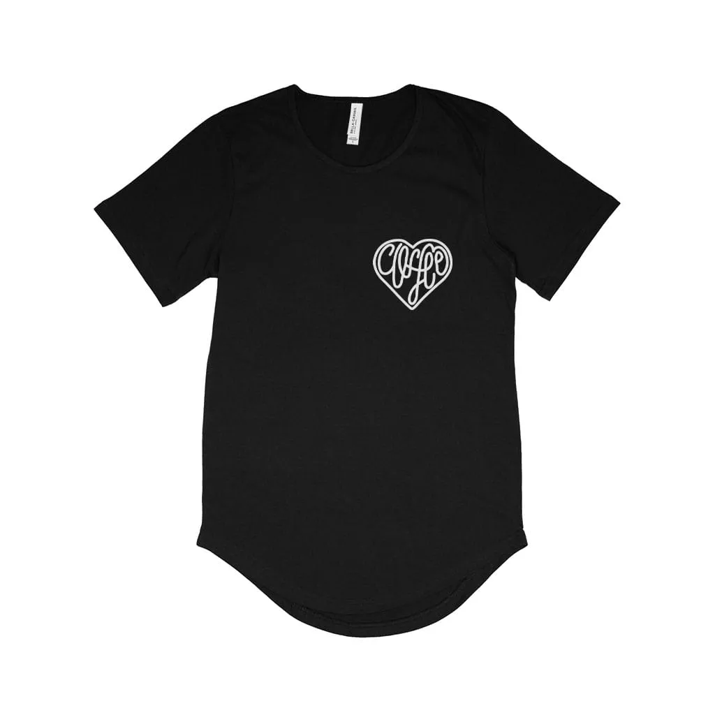 Coffee Heart Men’s Jersey T-Shirt with Curved Hem