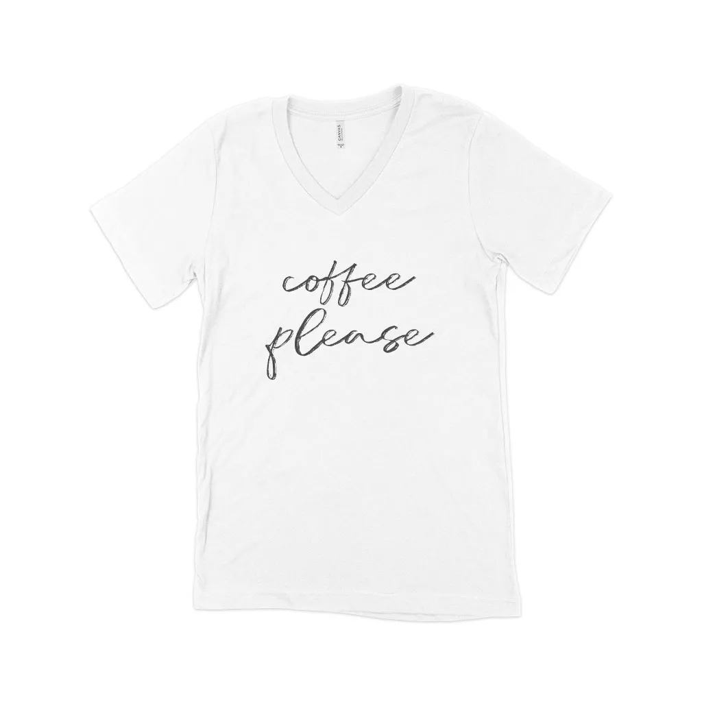 Coffee Please Unisex Jersey V-Neck T-Shirt