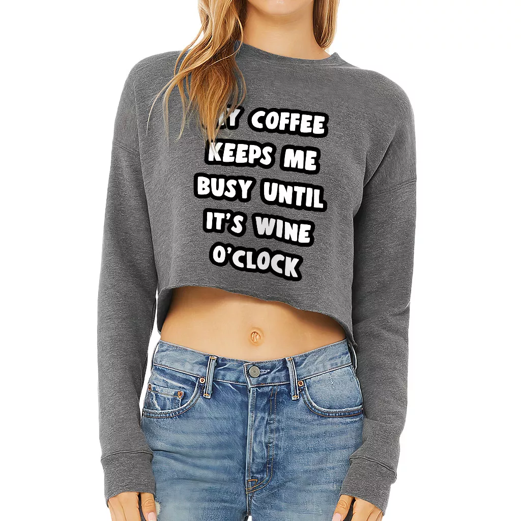Coffee Until Wine Cropped Sweatshirt – Funny Women’s Sweatshirt – Cool Crop Crew Sweatshirt