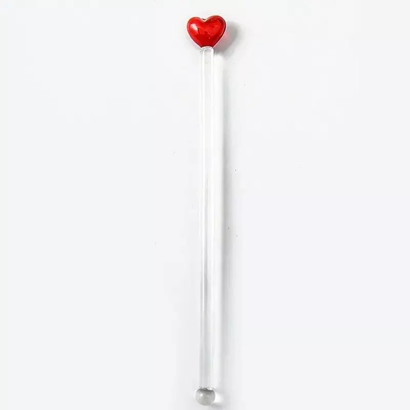 Colorful Heart-Shaped Glass Stirring Rod for Drinks & Decor