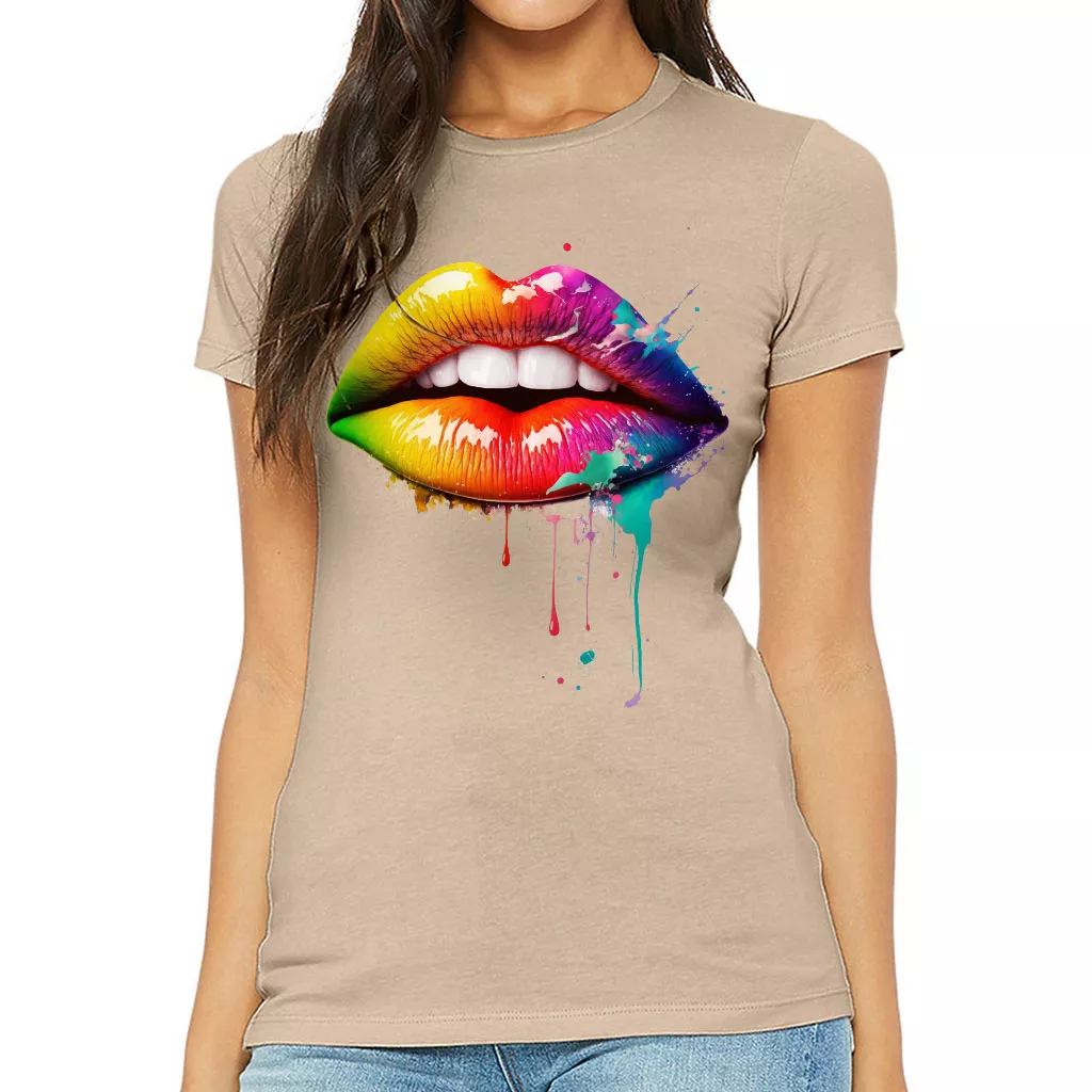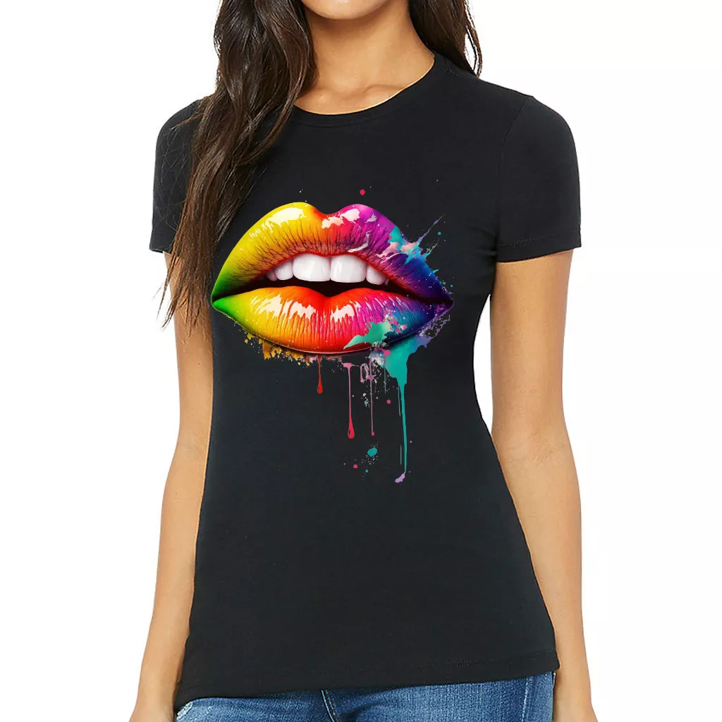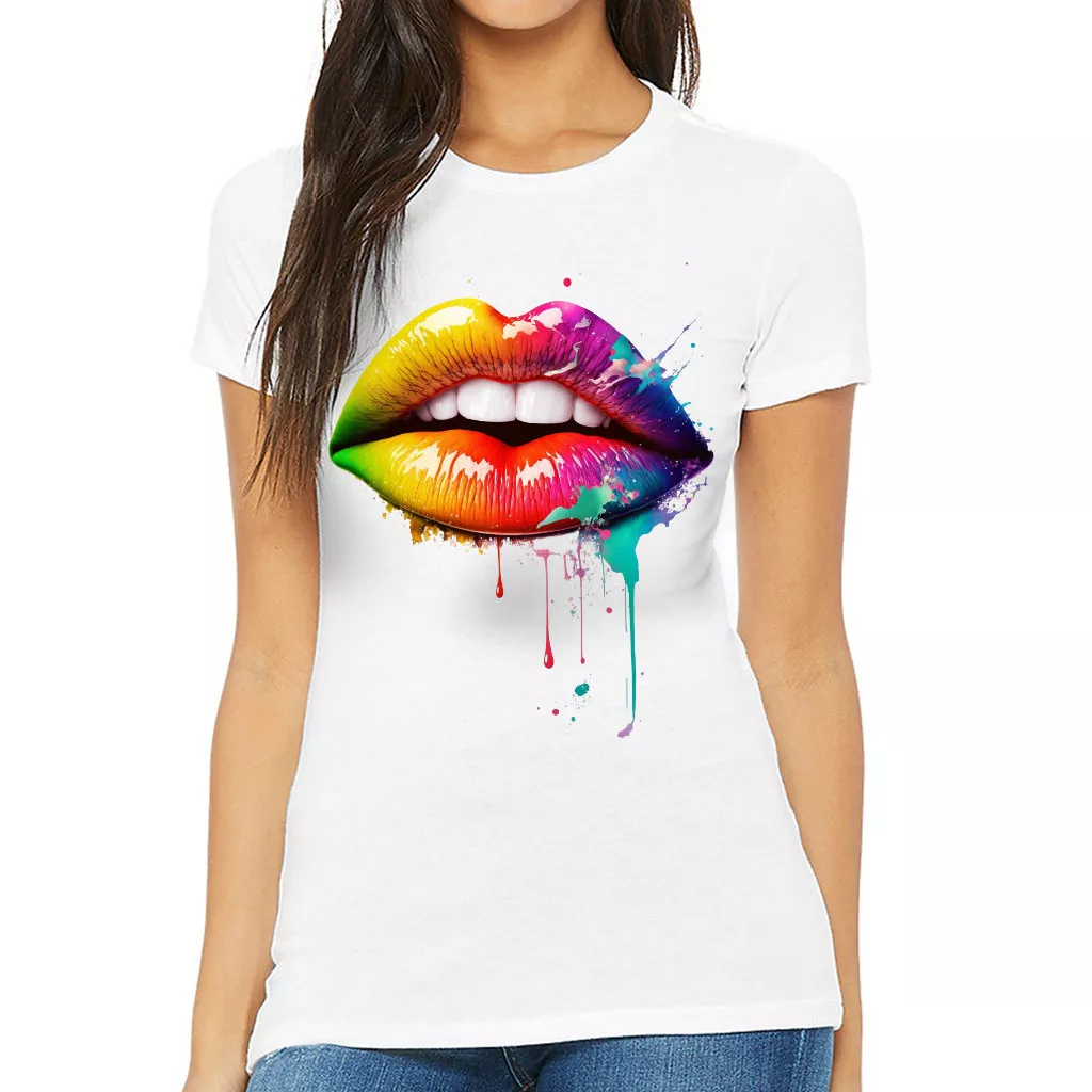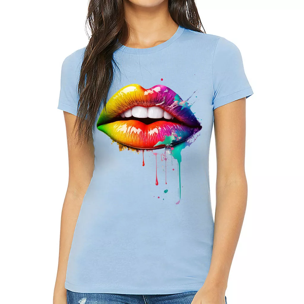 Colorful Lips Slim Fit T-Shirt – Cool Women’s T-Shirt – Trendy Slim Fit Tee