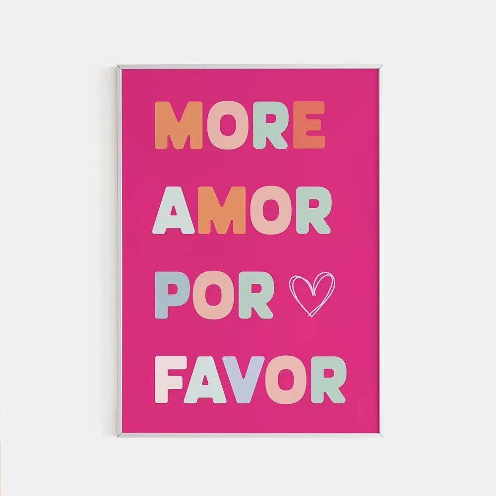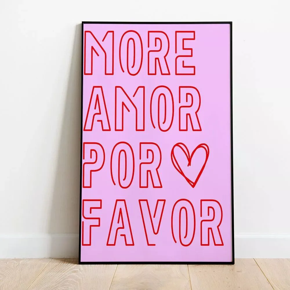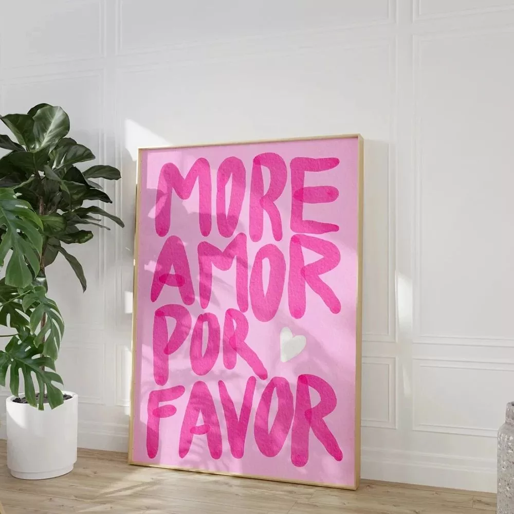 Our “More Amor Por Favor” poster is not just a piece of art; it’s a mantra for life. Designed to inspire more love and joy, it serves as a daily reminder of what truly matters. Ideal for living rooms, bedrooms, or any space that could use a splash of pink and a heartwarming message, this canvas painting is versatile. Its modern style seamlessly blends with both contemporary and eclectic decor, making it a special addition to your home.